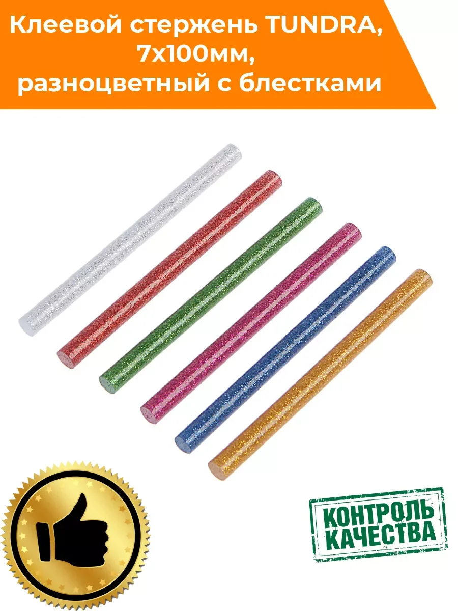 Клеевые стрежни рассчитаны на пистолет 7мм. Длина стержней 100мм. В упаковке 6 штук. Клеевые стержни используются в качестве расходных материалов для клеевых пистолетов обеспечивают надежное склеивание различных материалов: бумаги, пластика, дерева, керамики, ткани, кожи и других. Клеевой стержень золотистый используются для герметизации швов и трещин. Они изготовлены из полимера ЭВА (этиленвинилацетат) с добавлением воска и смолы: нетоксичные, водостойкие. Клеевые стержни подходят для маломощных клеевых пистолетов (плавятся при температуре около 100°).