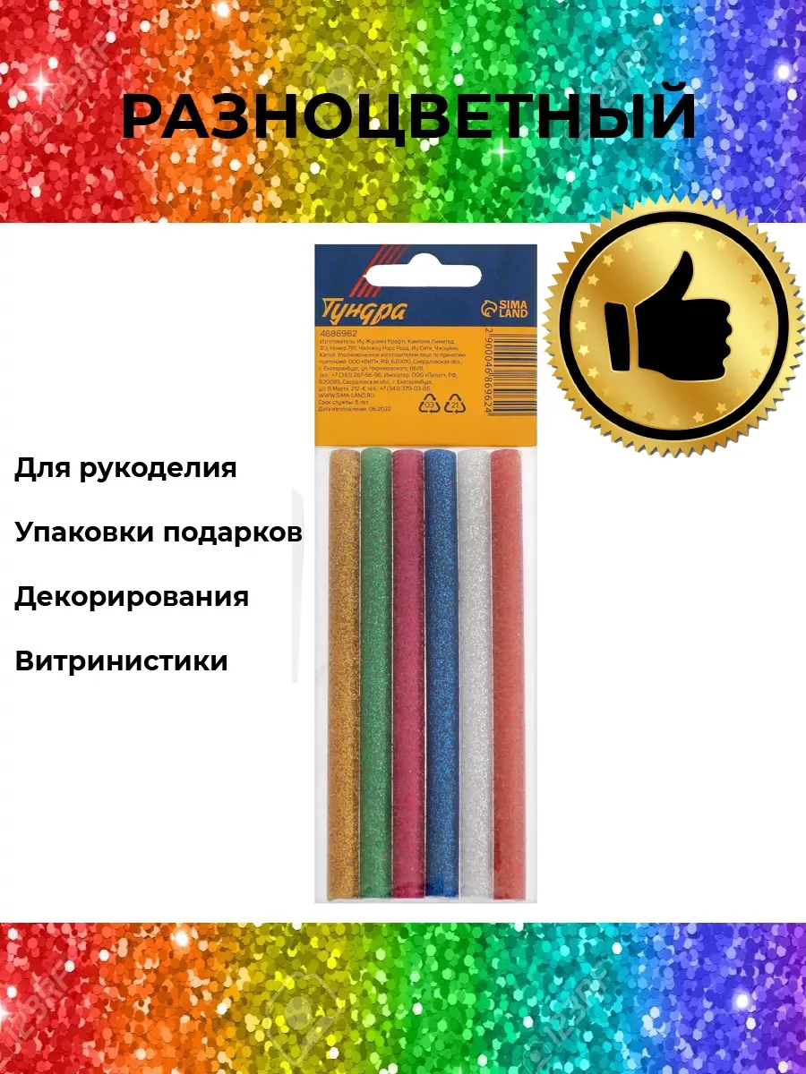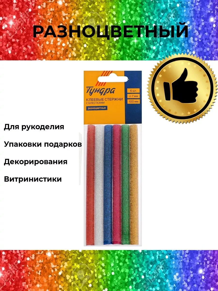 Клеевой стержень разноцветный с блестками
