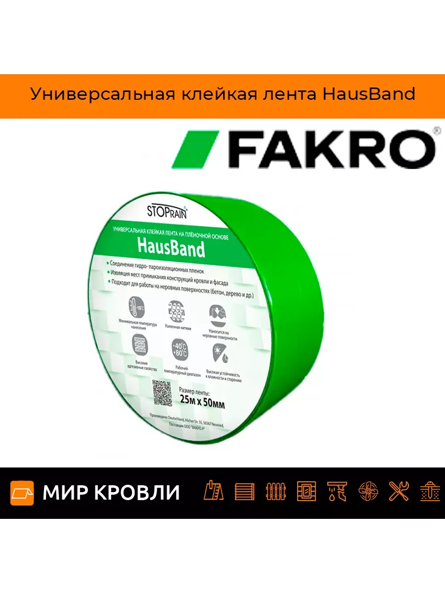 Универсальная клейкая лента Fakro HausBand (25м х 50мм) - это односторонняя усиленная лента, разработанная для создания прочного соединения пароизоляционных пленок и изолирующих материалов, для изоляции на стыках, потолков и стен с различными строительными элементами.