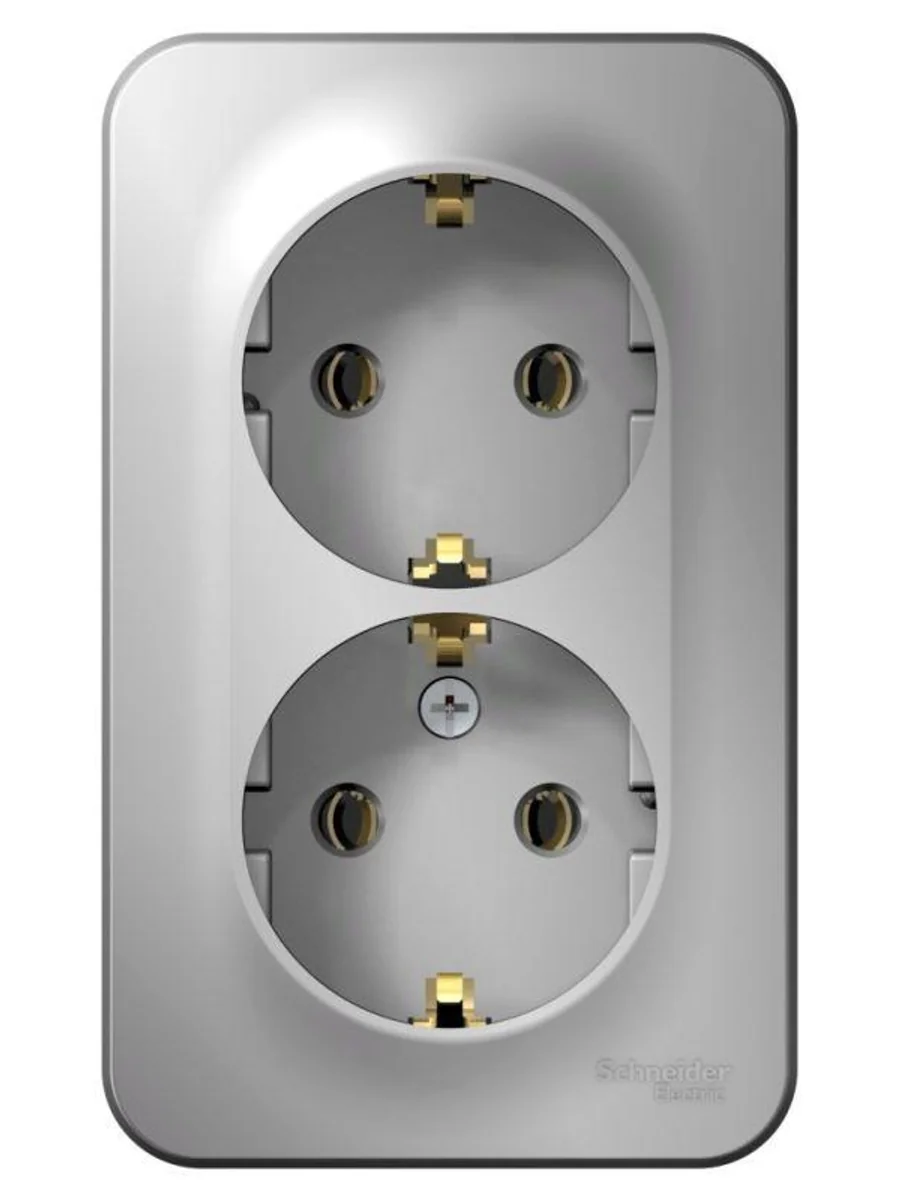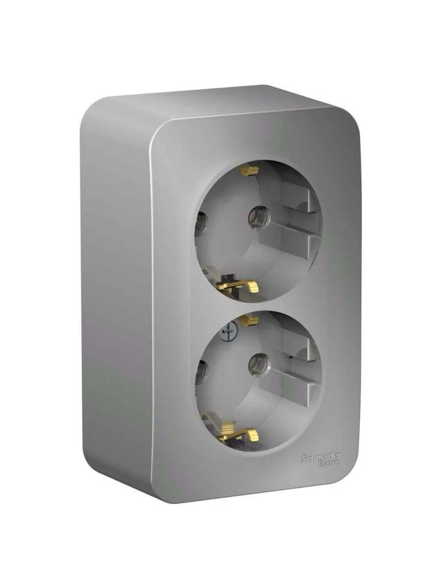 Розетка Systeme Electric (ранее Schneider Electric) BLANCA (алюминий, открытой установки) двухместная, без шторок, с заземлением и изолирующей пластиной предназначена для сетей до 250В, на ток до 16А. Двухместная розетка позволяет подключить два устройства в одном месте. Заземление обеспечивает безопасность при косвенном прикосновении. Она изготовлена из ABS-пластика, проста в установке и удобна в применении.