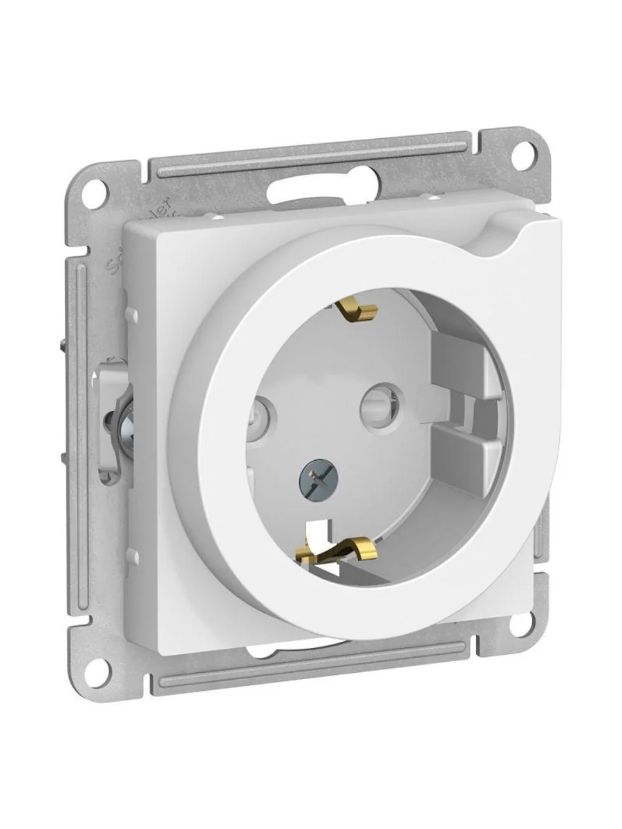 Механизм Systeme Electric (ранее Schneider Electric) серии AtlasDesign в цвете белый розетки одинарной с заземлением, шторками с выталкивателем подходит для сетей 250 В, на ток 16 А. Пластик с ионами серебра в белом цвете обеспечивает антибактериальный эффект. Заземляющий контакт обеспечивает дополнительную защиту от удара электрическим током. Оснащена специальным механизмом: рычаг при повороте выталкивает вилку из розетки, что особенно удобно при частом подключении к розетке массивных вилок от бытовых приборов.