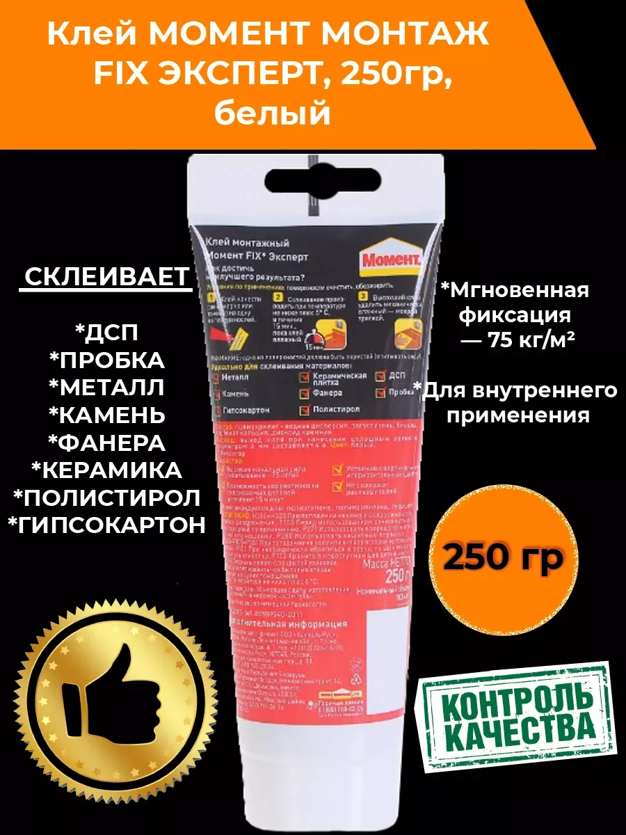 Идеально подходит для склеивания различных строительных и отделочных материалов. Клей монтажный Момент FIX Эксперт 250 г не содержит органических растворителей. Применяется для установки подоконников и дверных рам, стеновых панелей из дерева, ПВХ, пробки, гипрока, Приклеивания изоляционных панелей, декоративных деталей, профилей. Для приклеивания плинтусов и декоративных фризов. Одна из соединяемых поверхностей должна быть пористой (впитывать воду). НЕ ПОДХОДИТ: для полиэтилена, полипропилена и тефлона.