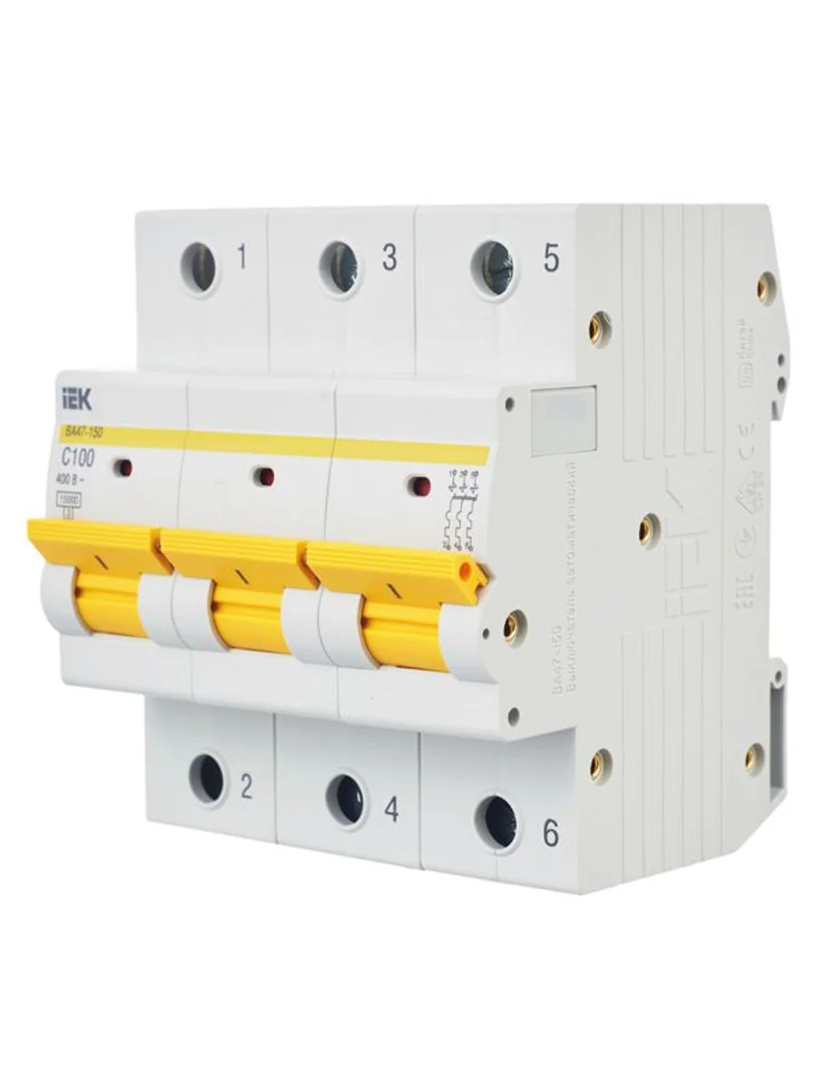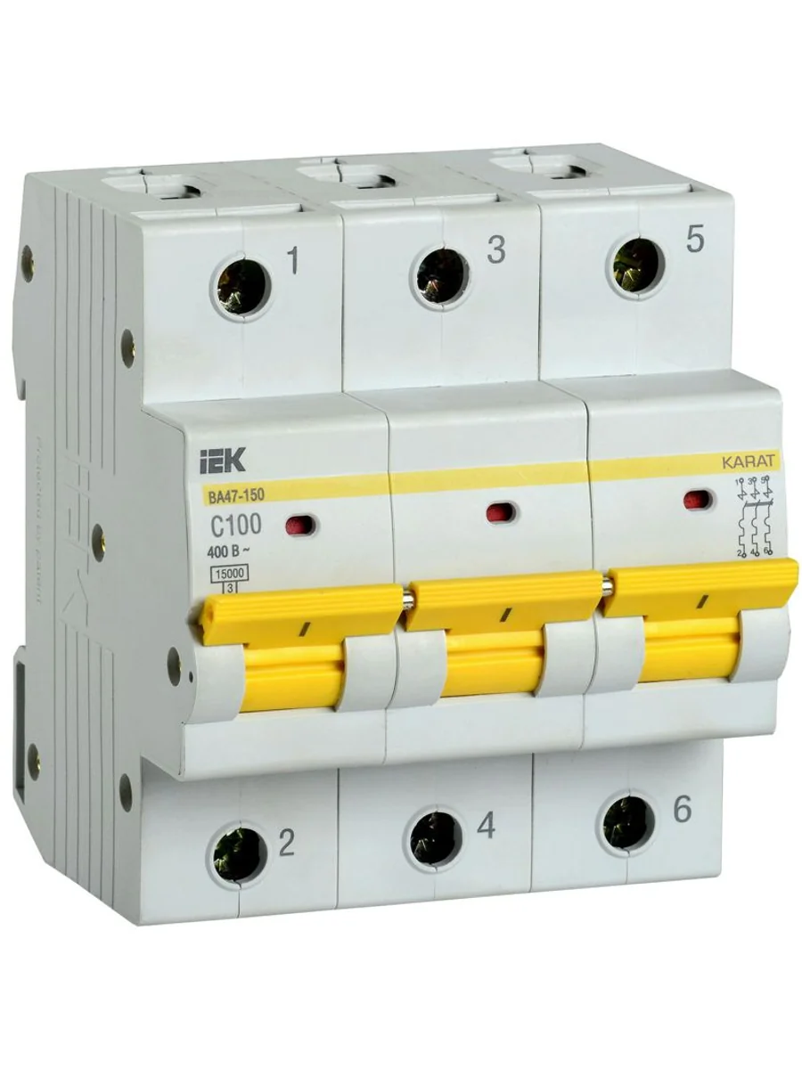 Автоматические выключатели ВА47-150 предназначены для защиты распределительных и групповых цепей от высоких токов короткого замыкания. Рекомендуются к применению во вводно-распределительных устройствах бытовых и промышленных электроустановок. Предельная отключающая способность 15000 А. 32 типоисполнения на 4 номинальных тока. Характеристики срабатывания С и D.
