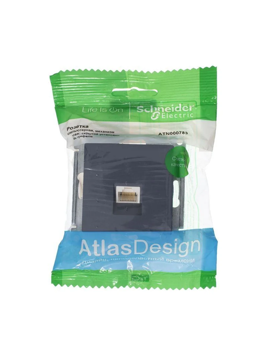 Механизм Systeme Electric (ранее Schneider Electric) серии AtlasDesign в цвете грифель розетки компьютерной с разъёмом RJ45 категория 5е предназначен для удобного и быстрого подключения вашего компьютера к локальной вычислительной сети. Лицевые детали из качественного ABS-пластика, устойчивого к царапинам и УФ-излучению. Усиленные прямые монтажные лапки для лучшей фиксации механизма в монтажной коробке.