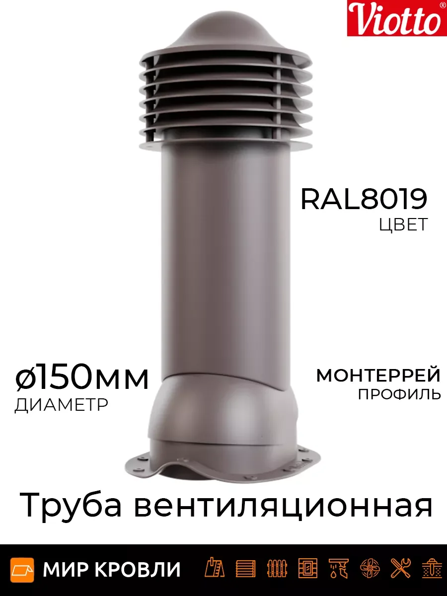 Обеспечивает приток свежего воздуха и правильную циркуляцию воздушных потоков в доме. Создает благоприятный микроклимат, обеспечивая правильный воздухообмен. Технические характеристики1. Есть возможность установки на готовую мягкую и фальцевую кровлю, металлочерепицу монтеррей, мягкую кровлю при монтаже, на профнастилы включая 35, на любой тип металлочерепицы.2. Состоит из основания (проходного элемента), трубы (с кольцами и колпаком) и гофры (для соединения с трубами вентиляции).3. Регулируемый уровень наклона от 5°С до 45°С4. Диаметр труб 110мм\высота 550мм, 125мм и 150мм\высота 650мм, она может быть утепленной и не утепленной.5. На колпаке имеется встроенный уровень для удобства выравнивания трубы на кровле.6. Форма кольца, предотвращающая попаданию дождевой воды внутрь