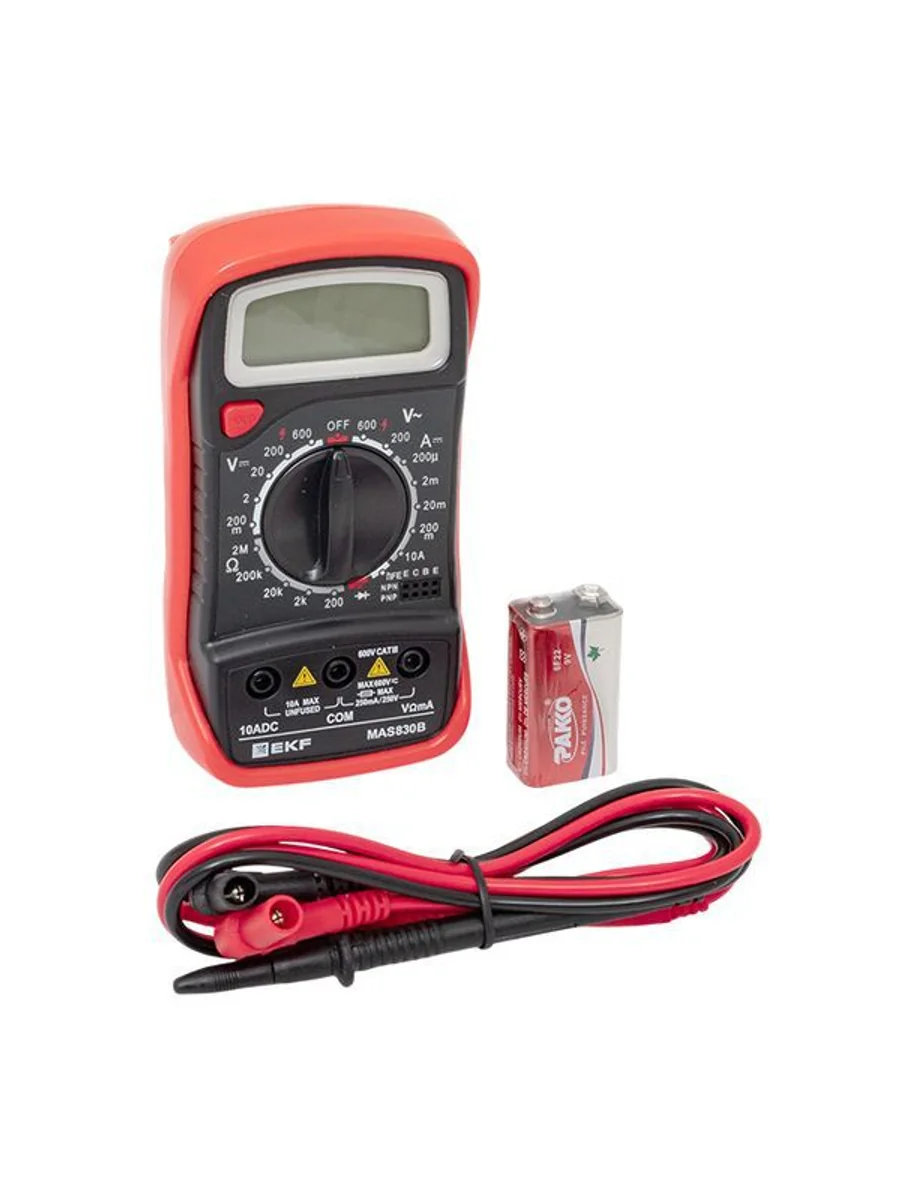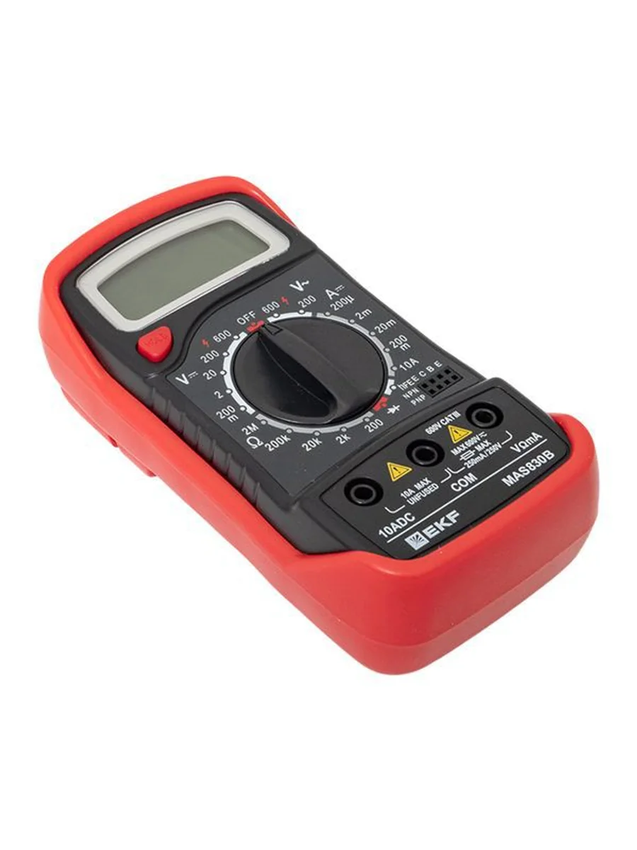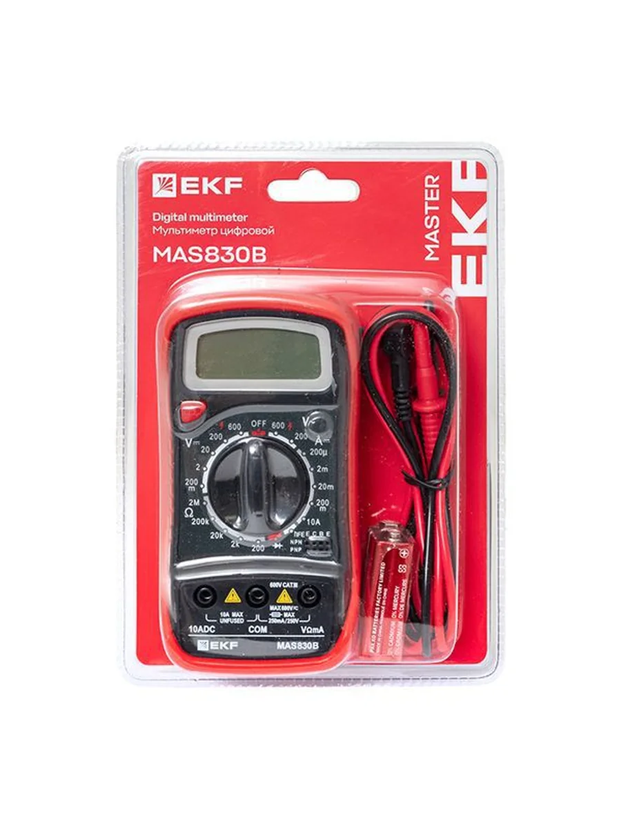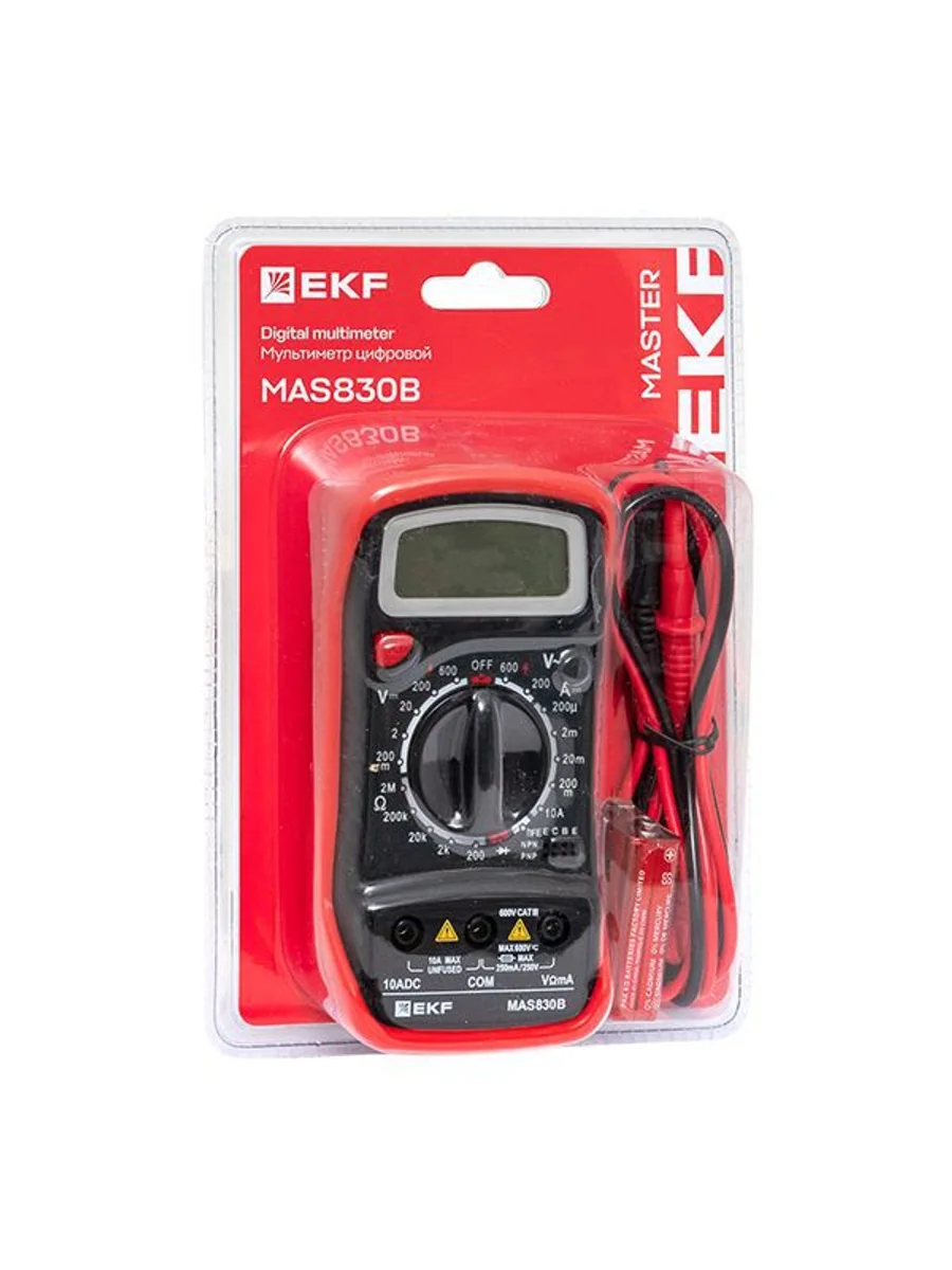 Мультиметр — это универсальный измерительный прибор. В функционал цифрового мультиметра MAS830B EKF Master входит измерение переменного напряжения до 600В, измерение постоянного напряжения до 600В, измерение постоянного тока 10А, измерение электрического сопротивления до 2МОм, проверка диодов и транзисторов.