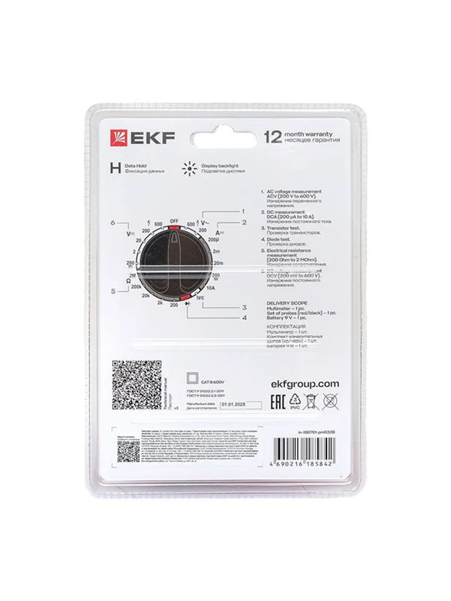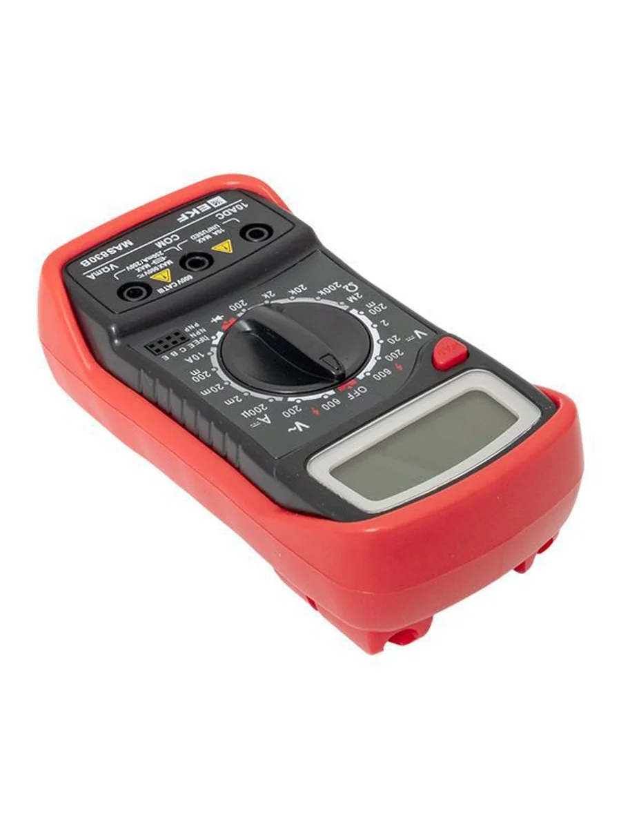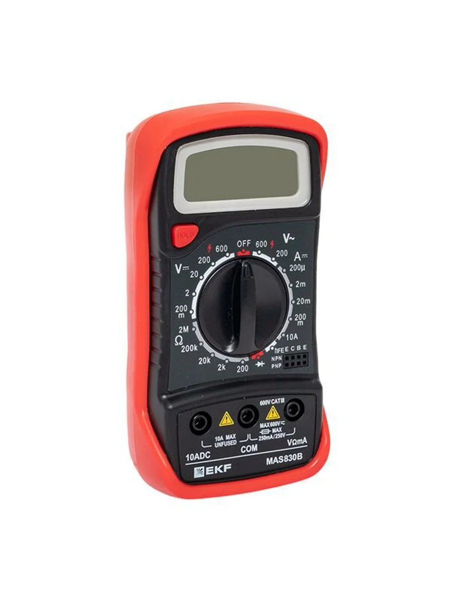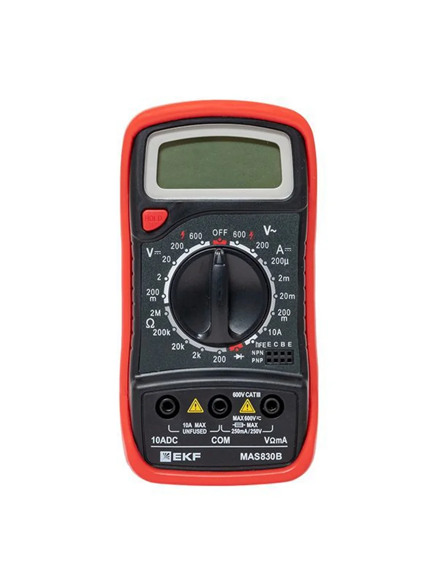 Мультиметр — это универсальный измерительный прибор. В функционал цифрового мультиметра MAS830B EKF Master входит измерение переменного напряжения до 600В, измерение постоянного напряжения до 600В, измерение постоянного тока 10А, измерение электрического сопротивления до 2МОм, проверка диодов и транзисторов.