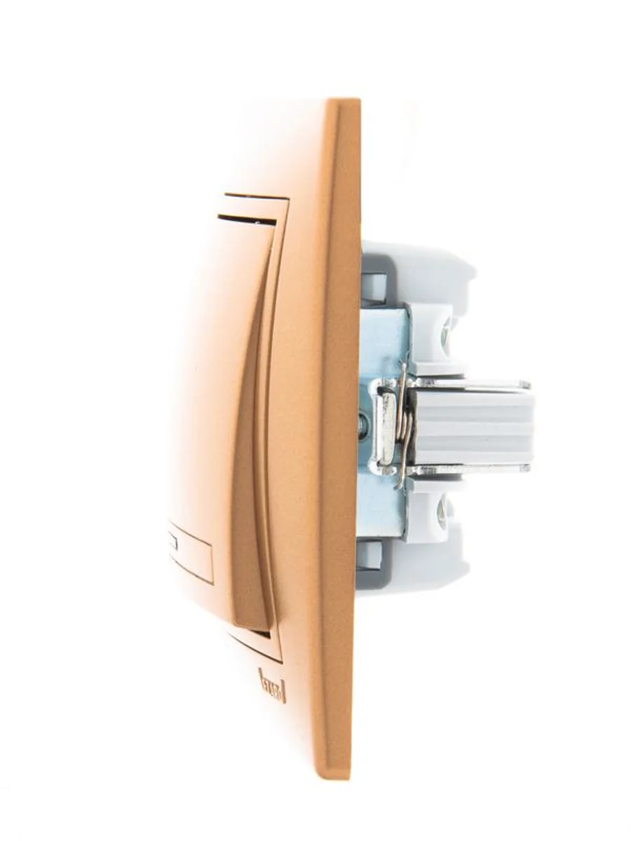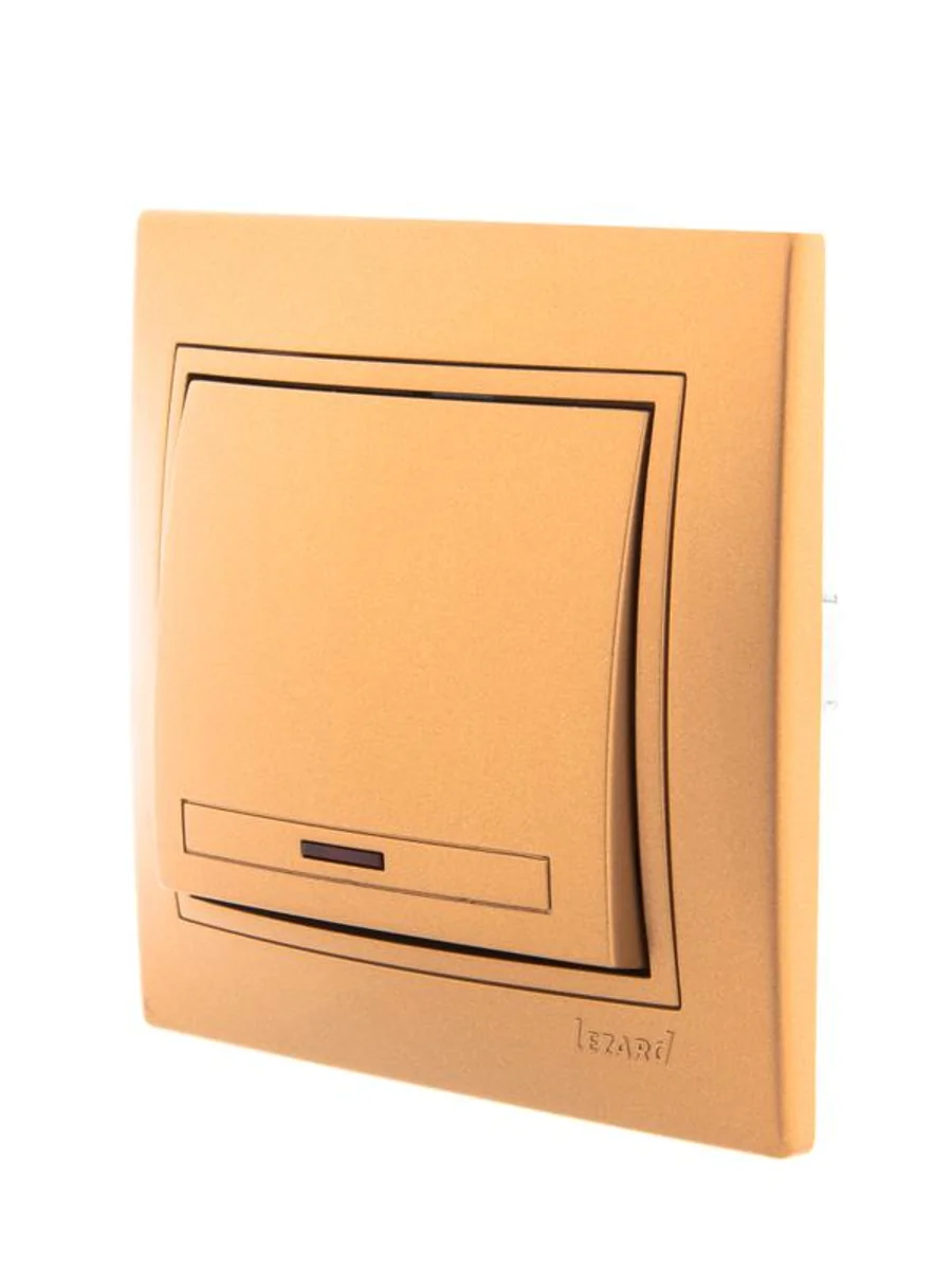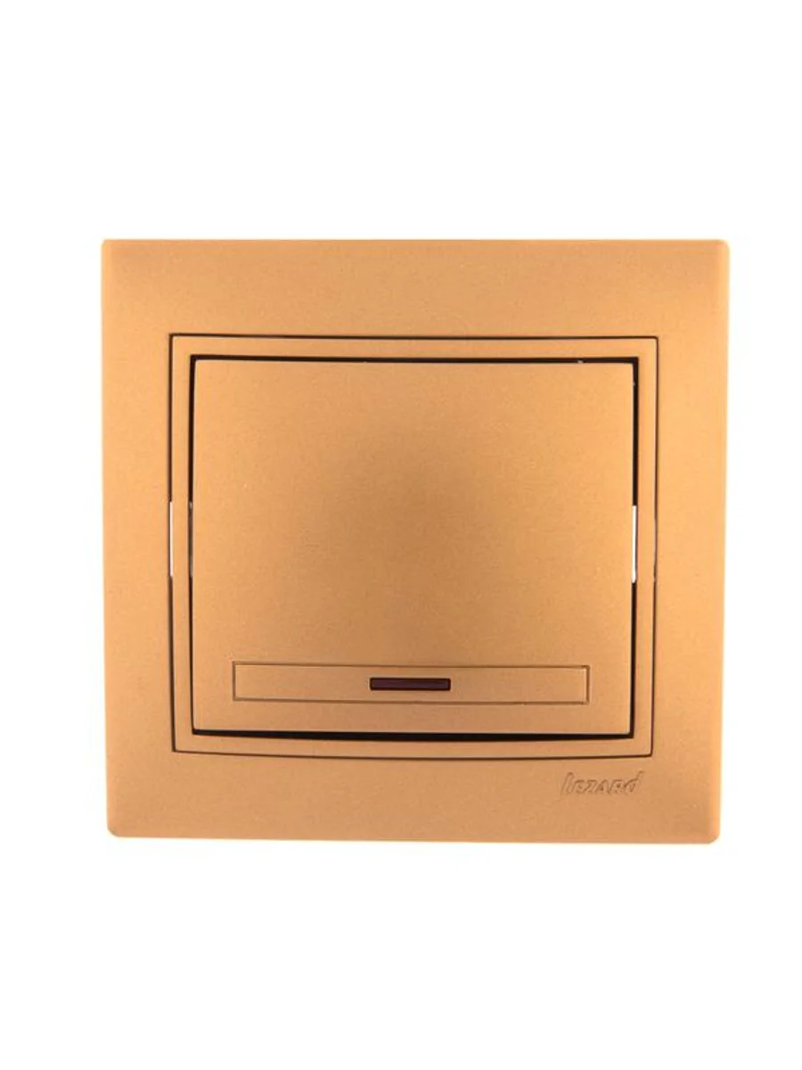 Выключатель 1-кл. СП Mira 10А IP20 с подсветкой со вставкой зол. метал. LEZARD 701-1313-111 - купить в KeepBuilding | KeepBuilding