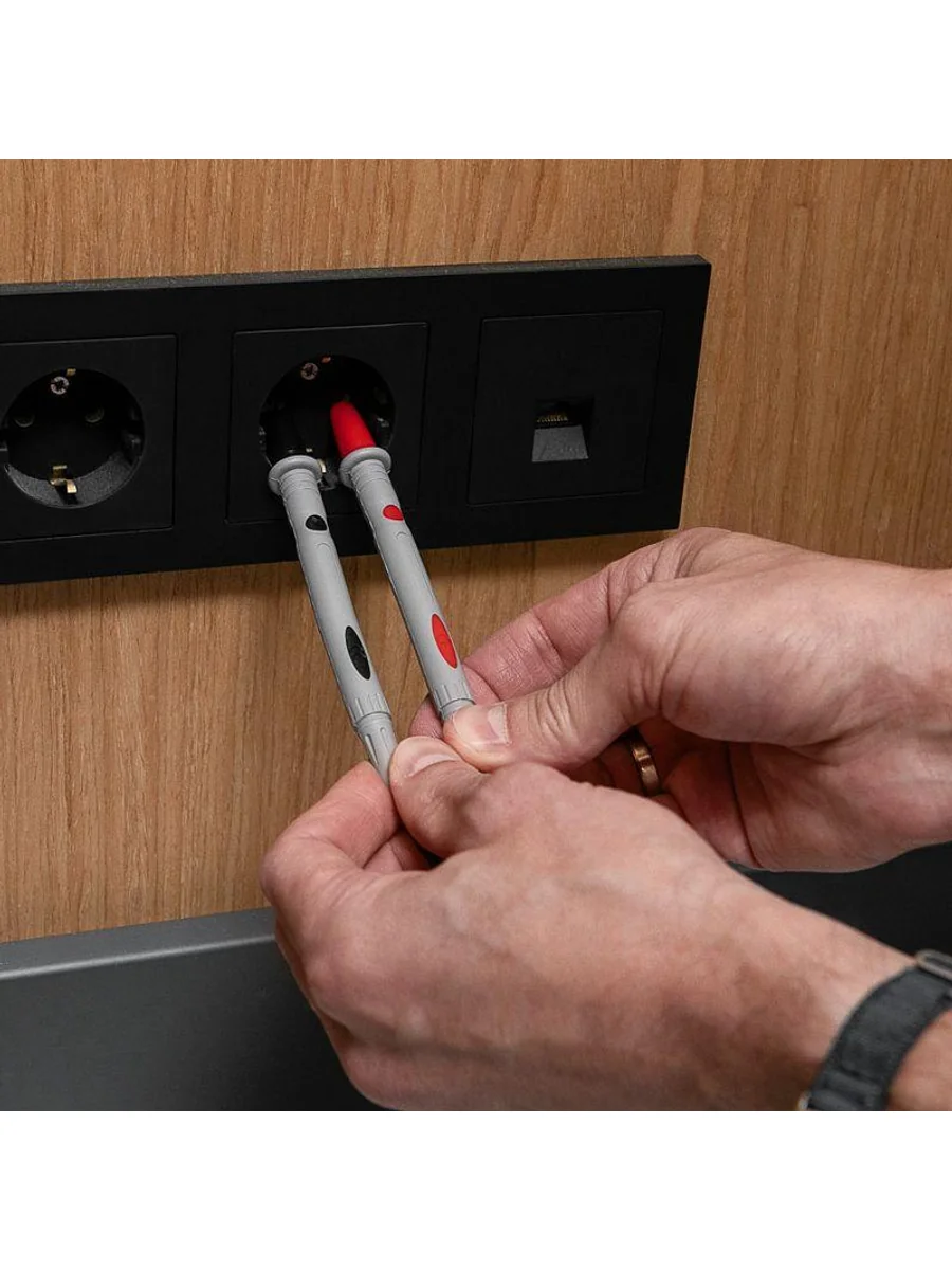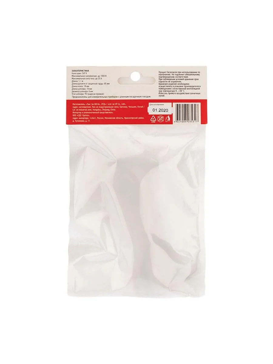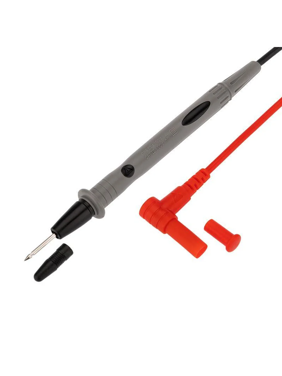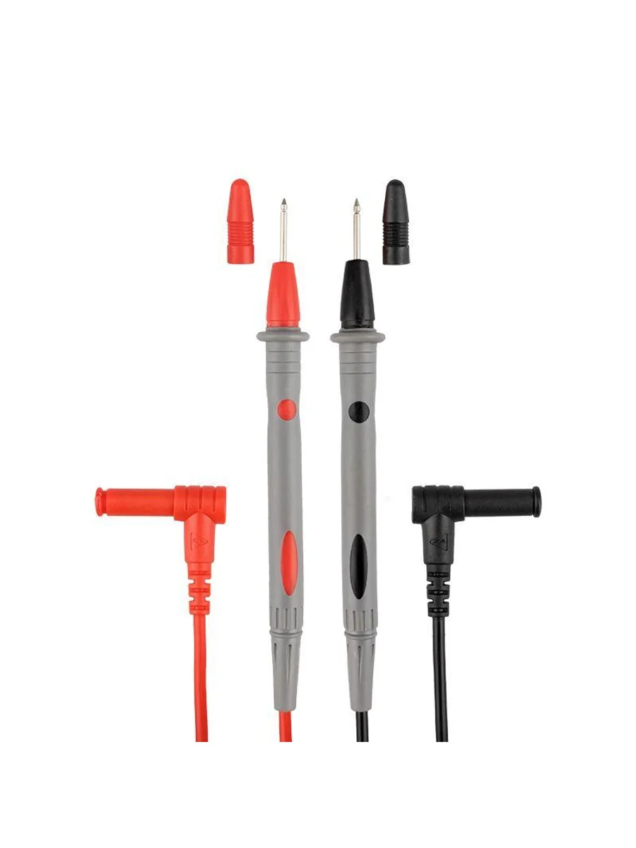 Высококачественные щупы REX05 REXANT для измерительных приборов и токовых клещей. Они подсоединяются к гнездам мультиметра, для удобства имеют разные цвета: черный и красный. Как правило, черный щуп подключается на общее гнездо, а красный — на гнездо «+». Клеммы, провода и ручки щупов надежно изолированы для защиты пользователя от поражения электрическим током. Для удобства работы металлические концы щупов заострены. Имеют в комплекте поставки защитные изолирующие колпачки для жал, что увеличивает удобство и безопасность работы и при хранении. Класс защиты от перенапряжения: Категория 2 до 1000 В 20 А Длина: 1080 мм Длина рукояти от защитной гарды: 85 мм Длина жала: 18 мм Длина штекера: 18 мм Диаметр штекера: 8 мм Угол штекера: 90 градусов (прямой) Подходят для приборов с длинным посадочным гнездом, например приборов серий: M890*, M266*, MS200*, MY6*, MS826*, UT5* UT6*, UT7*