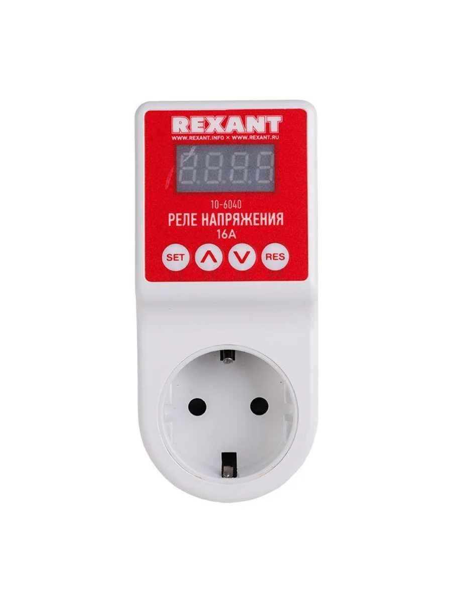 Реле напряжения Rexant – отличное решение для защиты любой домашней техники от импульсных помех и скачков напряжения в электросети. Модель убережет от выхода из строя не только компьютерное оборудование – она также подходит для любых бытовых приборов: кондиционеров, стиральных машин, телевизоров и другой дорогостоящей техники, требовательной к качеству напряжения в сети. Rexant незаменим на даче и в домах, где давно не менялась электропроводка. Модель от Rexant имеет программируемые пороги отключения и функцию задержки включения для дополнительной защиты от повторных сбоев в сети. Настройки реле хранятся в энергонезависимой памяти устройства – даже после полного обесточивания помещения все запрограммированные параметры работы сохранятся. Для дополнительного удобства в использовании модель оснащена LED-дисплеем – на нем отображается текущее напряжение в сети и при настройке реле видны задаваемые параметры. Реле напряжения защищает электрическое оборудование, отключая нагрузку при выходе питающего напряжения за допустимые пределы. Задержка обратного включения позволяет предотвратить серийные срабатывания. Конструкция соответствует самым современным требованиям безопасности. Корпус реле выполнен из прочного негорючего пластика белого цвета. Выходная розетка имеет защитные шторки. Также модель оснащена контактом защитного заземления. Особенности: Защита подключаемых устройств от повышенного/пониженного напряжения в сети Защита подключаемых устройств от импульсных помех в сети Программируемые пороги отключения и время задержки включения (до 999 сек.) Многофункциональный LED-дисплей для отображения рабочих параметров Энергонезависимая память запрограммированных настроек Технические характеристики: Номинальное напряжение, В 220 Измеряемое напряжение, B 100 – 300 Максимальный ток нагрузки, А 16 Максимальная мощность, кВA 3,3 Максимальная поглощаемая энергия импульсной помехи, Дж 125 Порог срабатывания по понижению напряжения сети, B 150 – 210 (шаг 1 В) Порог срабатывания по повышению напряжения сети, B 230 – 265 (шаг 1 В) Время задержки включения, сек 5-999 (шаг 1 сек) Время срабатывания защиты не более 0,3 сек Размеры изделия, мм 53 ? 116 ? 80 Цвет белый