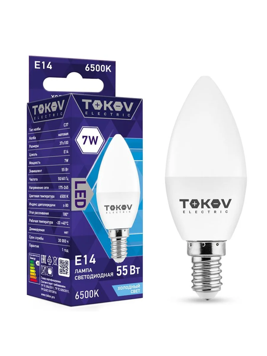 Лампа светодиодная 7Вт С37 6500К Е14 176-264В TOKOV ELECTRIC TKE-C37-E14-7-6.5K