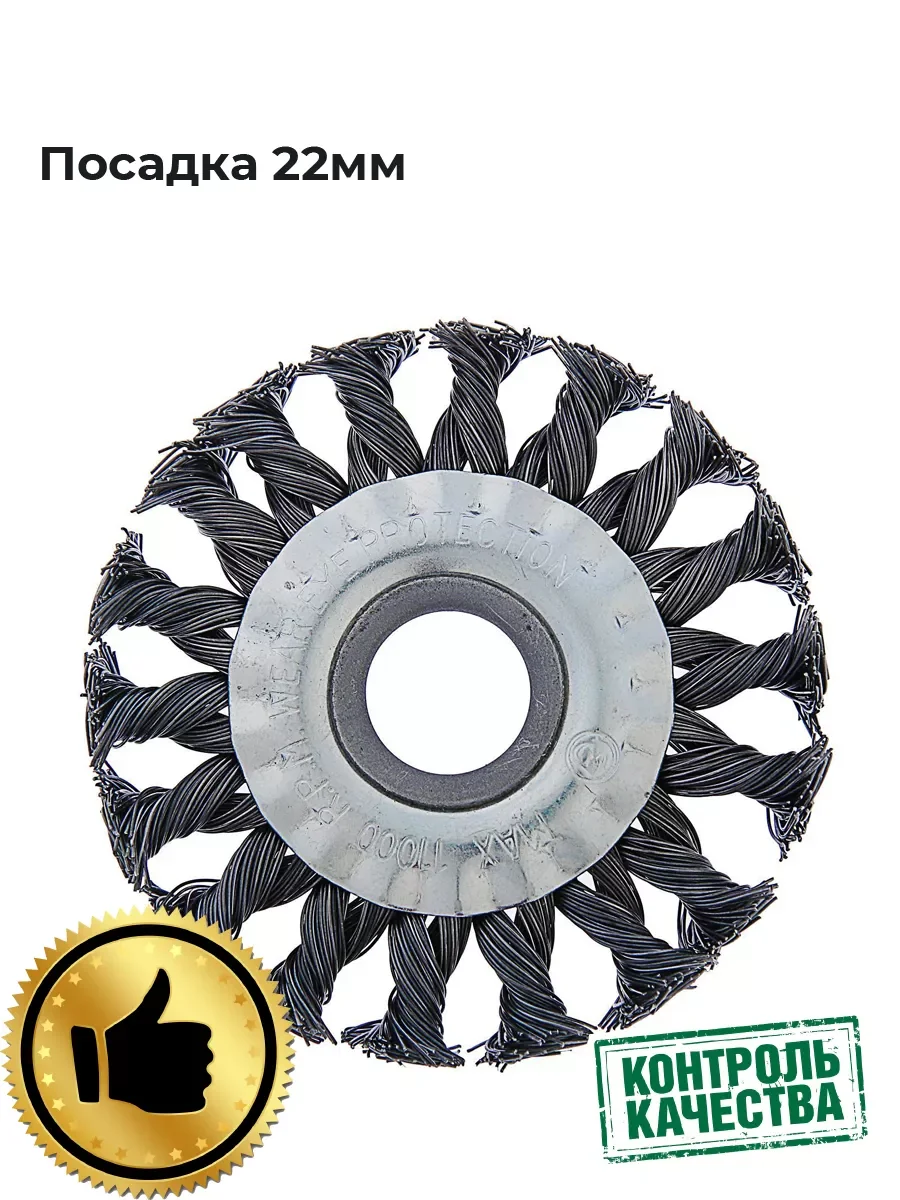 Плоская металлическая крученая щётка ТМ «TUNDRA» предназначена для грубой зачистки поверхностей изделий из различных материалов, удаления ржавчины, грязи, зачистки сварных швов металлических поверхностей. Применяется совместно с угловой шлифовальной машиной, посадочное отверстие - 22,2 мм.
