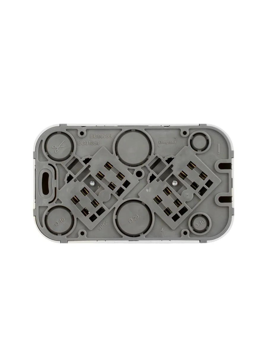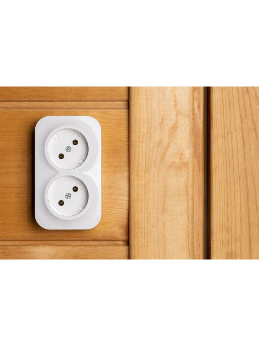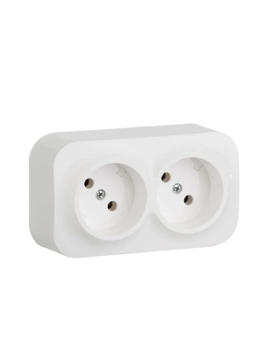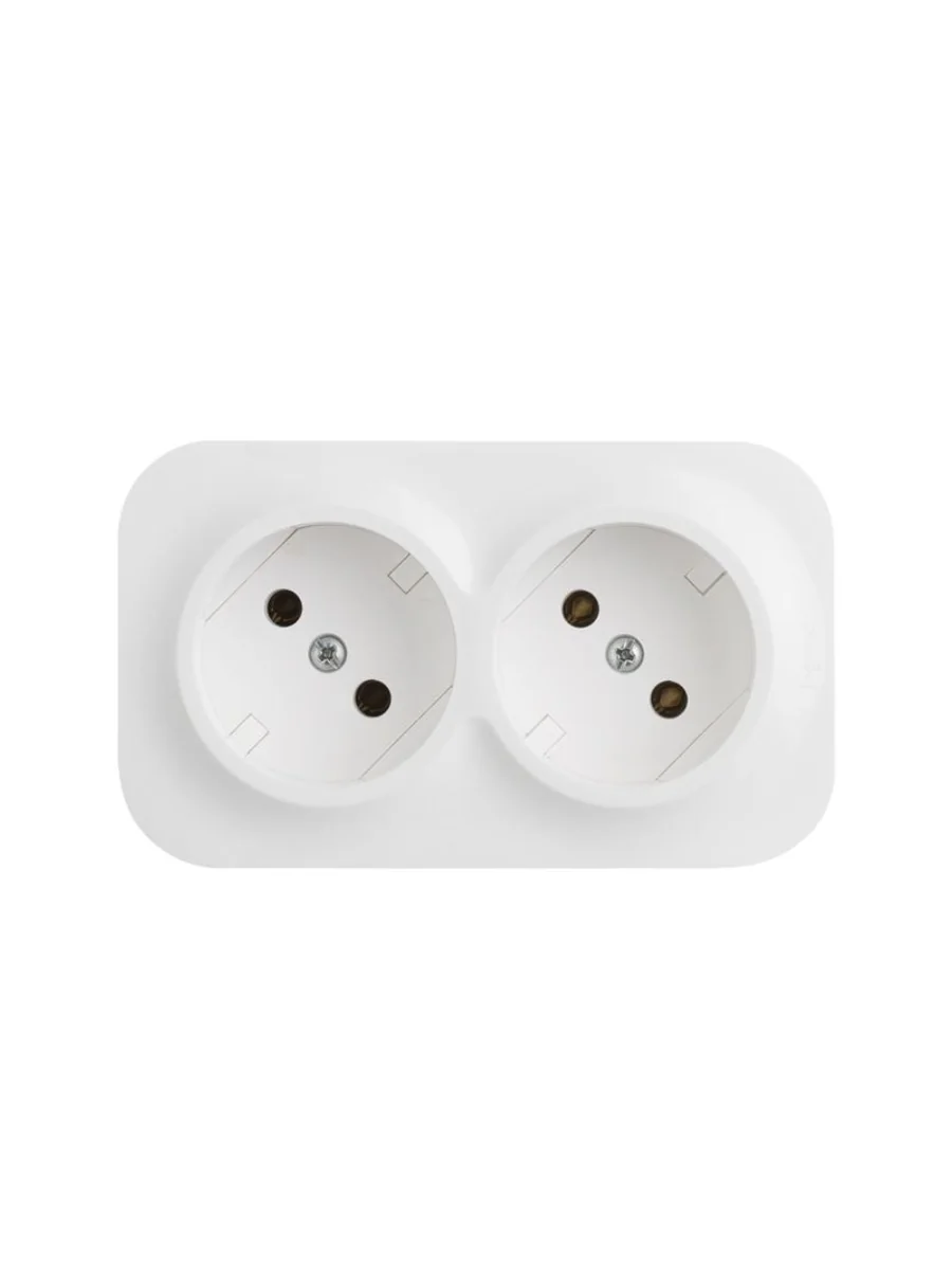 Розетка двухместная без заземления и защитных шторок QUTEO для открытого монтажа. Применяется в зданиях с проводкой без заземляющего контакта. Подходит для жилых комнат, офисов и других помещений со стандартными требованиями к электробезопасности. Надежные винтовые зажимы обеспечивают качественное соединение проводов, а компактные размеры и нейтральный дизайн делают эту розетку универсальным выбором для любого интерьера.