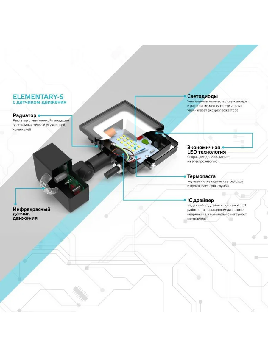 Универсальный и незаменимый прожектор Gauss Elementary с датчиком движения созданный для экстерьерной общей подсветки зданий и сооружений, освещения складов, промышленных и торговых объектов, а также ландшафтных объектов, теперь имеет улучшенную модификацию корпуса. Корпус прожектора Qplus Elementary изготовлен из прочного литого алюминия, рассеиватель выполнен из прозрачного закаленного стекла. Экономичная LED технология сокращает до 90% затрат на электроэнергию. Использование надежного нелинейного интегрированного драйвера гарантирует работу практически в любых условиях, отсутствие электромагнитных помех и высокий коэффициент мощности более 0,9. Материалы изготовления и конструкция прожекторов Elementary обеспечивают их высокую механическую прочность и полную защиту от пыли и влаги по классу IP65.