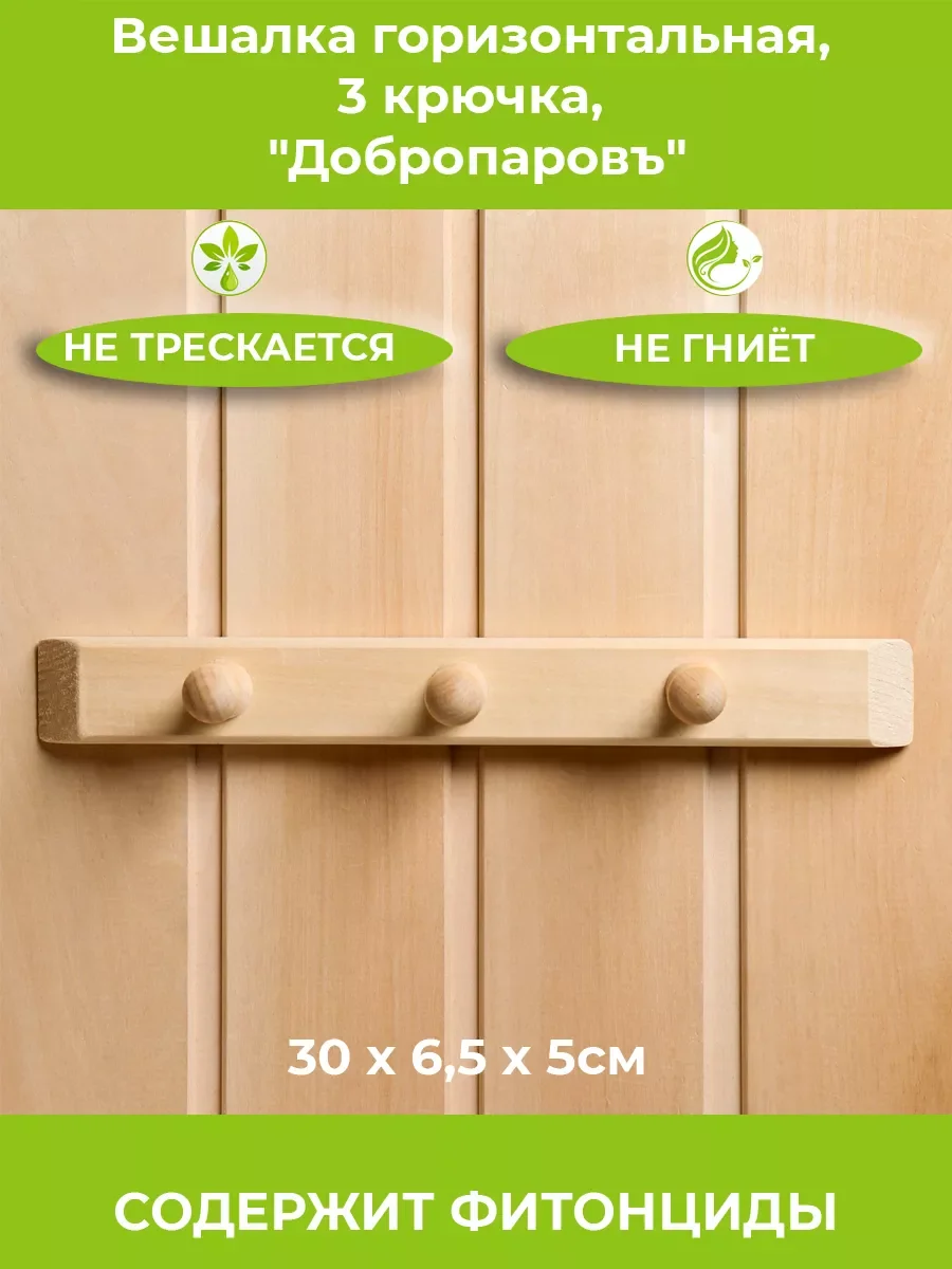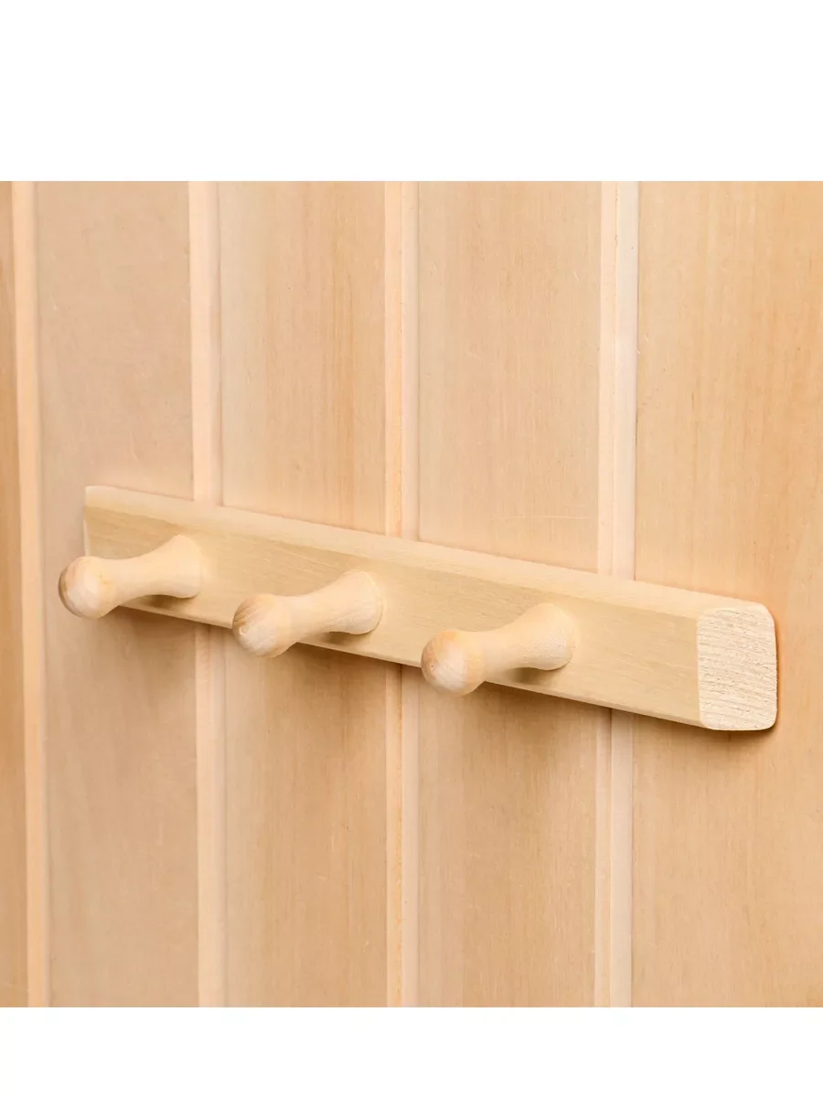 Деревянные вешалки для бани и сауны изготовлены из липы. Липа является самым популярным деревом для банщиков, используется для отделки бани и сауны, изготовления банной утвари и бондарных изделий, так как она долговечна, имеет приятный натуральный запах дерева и красивый цвет. Вешалка производится без применения клея, который при высоких температурах может выделять токсичные пары. Вешалки для одежды выдерживают перепады температуры, не рассыхаются. Вешалки деревянные также влагоустойчивы, не подвержены гниению и не выделяют смолу. Вешалка настенная в баню имеет 3 прочных удобных крючка, на которые легко поместятся ваши полотенца банные, шапка для бани. Вешалки для одежды деревянные легко выдержат даже халат банный женский весом до 3 кг. Вешалка настенная деревянная для банных принадлежностей и одежды незаменимая вещь в парной. Деревянные изделия наиболее часто используются в бане и сауне, т.к. они экологически чистые и безопасные для здоровья. Вешалка отшлифована и не обработана специальными пропитками. Это позволяет вам вешалки для одежды деревянные самостоятельно покрасить или пропитать любым цветом, который подойдет именно вам.