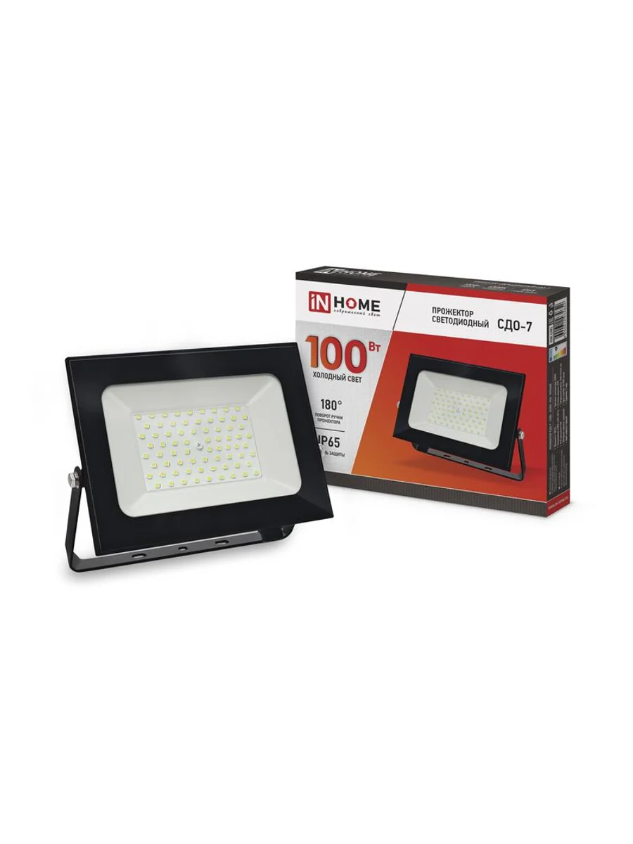 Прожектор светодиодный СДО-7 100Вт 6500К IP65 9000лм 230В черн. IN HOME 4690612034652 - купить в KeepBuilding | KeepBuilding