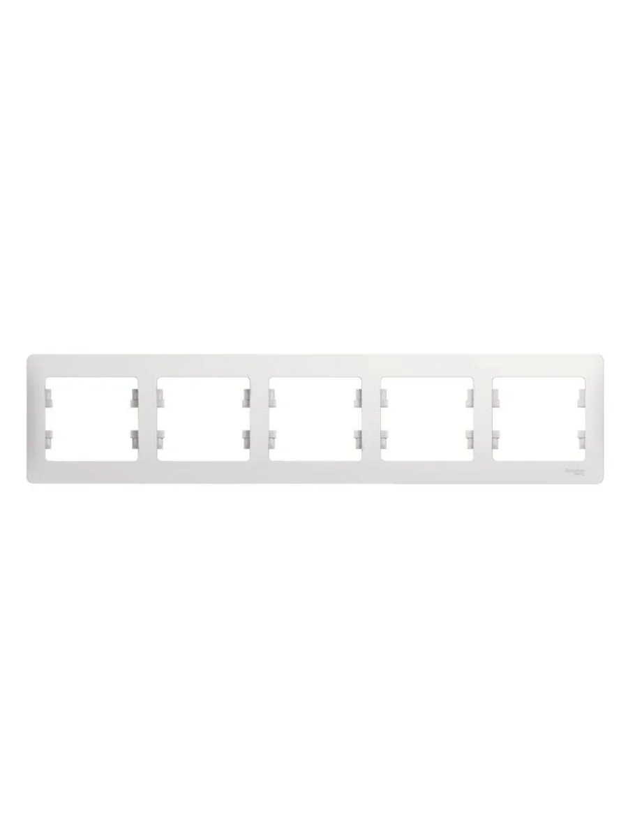 Рамка Systeme Electric (ранее Schneider Electric) серии Glossa (цвет белый) пятиместная. - Устанавливается в горизонтальном положении. - Выполнена из материала PС+ASA, стойкого к УФ-излучению и появлению царапин. - Позволяет гармонично вписать электроустановочное изделие в интерьер помещения.