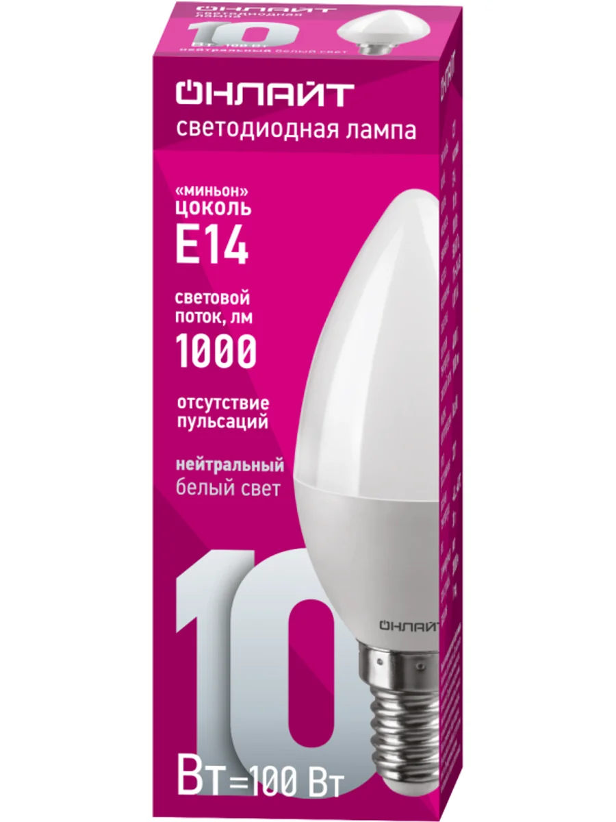 Лампа светодиодная 61 957 OLL-C37-10-230-4K-E14-FR 10Вт ОНЛАЙТ 61957 - купить в KeepBuilding | KeepBuilding