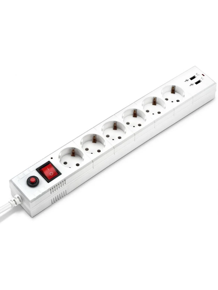 Электроустановочный аксессуар. Представляет собой трехжильный проводник сечением жилы 0,75 кв.мм. Длина шнура составляет 5 м, с розеткой типа "евро". Количество гнезд для подключения: 6 шт. Предусмотрены два USB-входа для подключения устройств с такими входами. Представляет собой средство подключения нескольких приборов в сеть. Предохраняет бытовые приборы и компьютерную технику от перепадов напряжения в сети и короткого замыкания, стороннего воздействия электромагнитных помех и импульсных скачков напряжения на входе.