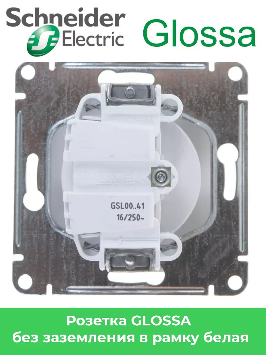 Механизм Schneider Electric Glossa (цвет белый) розетки одинарной без заземления и без шторок подходит для сетей 250 В, на ток 16 А.- Выполнен из материала PС+ASA, стойкого к УФ-излучению и появлению царапин.- Эргономичные клеммы розеток расположены в один ряд.
