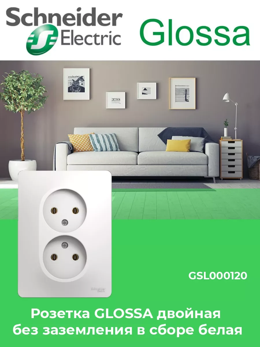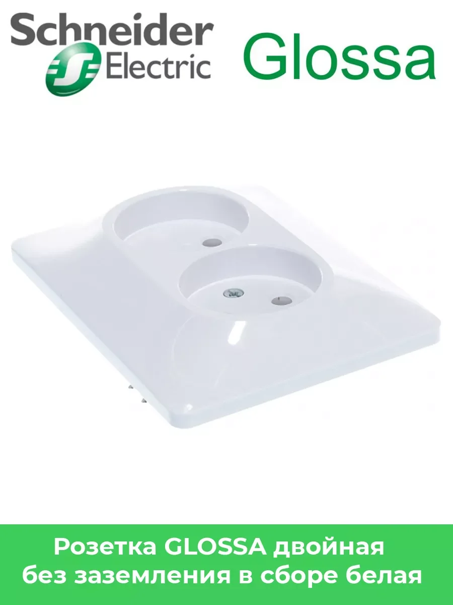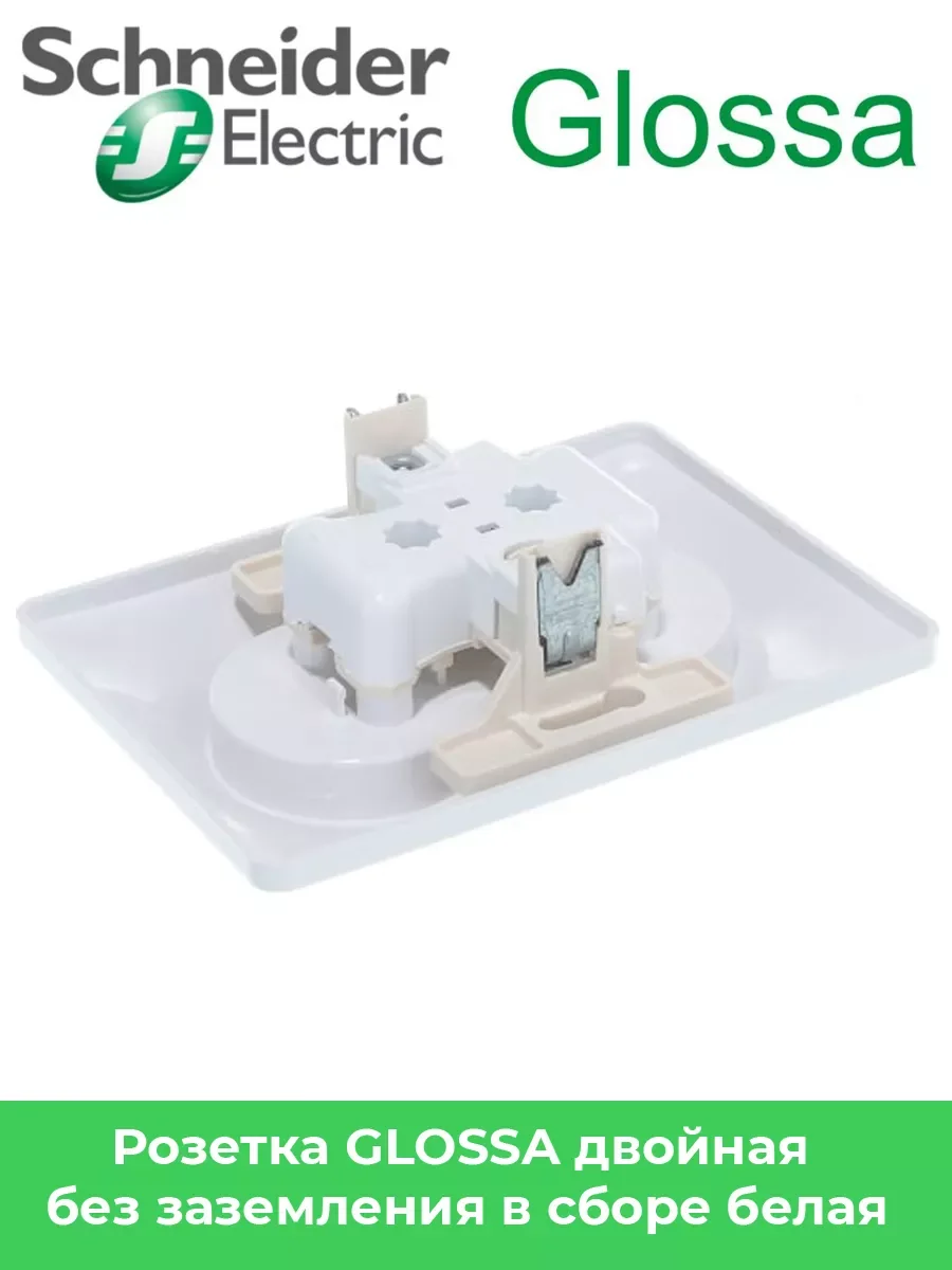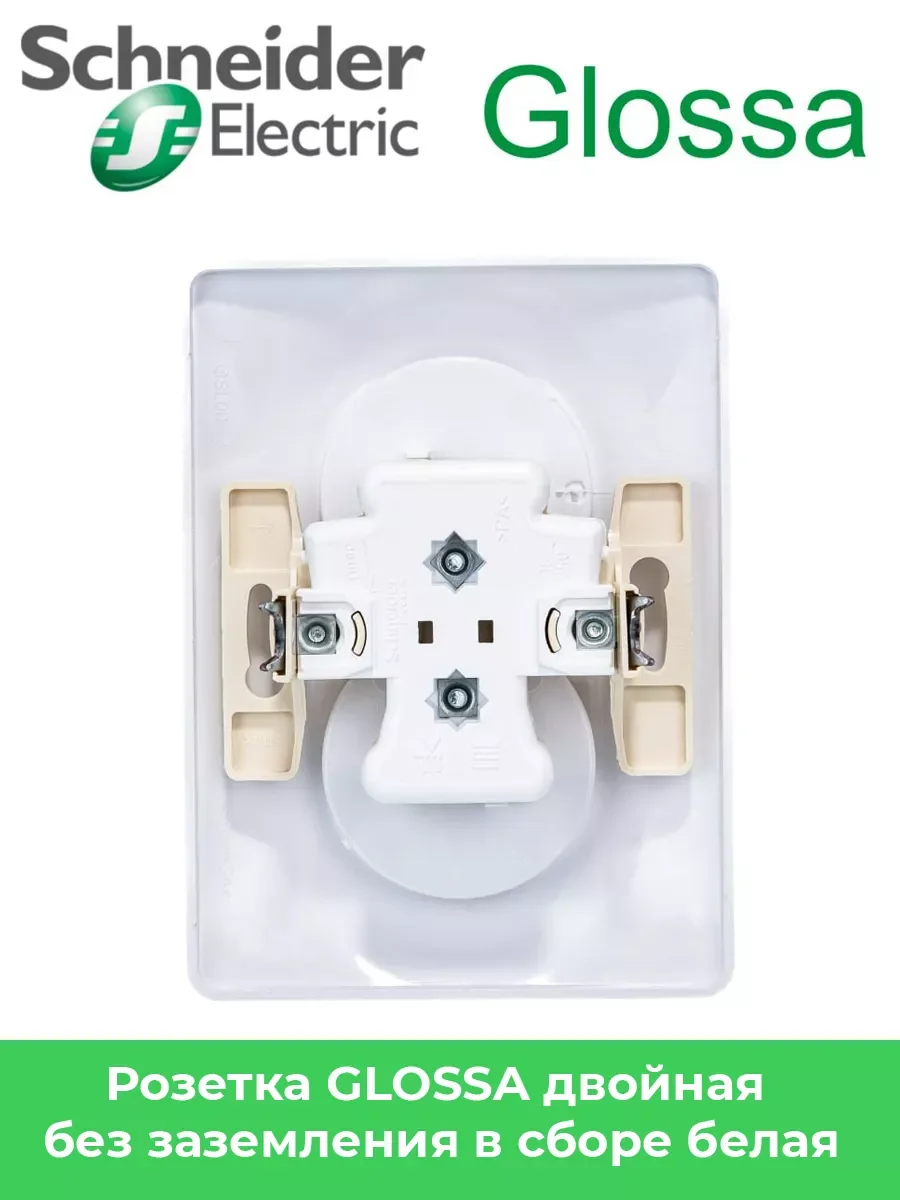 Розетка двойная Schneider Electric Glossa (в сборе, цвет белый) без заземления и без шторок подходит для сетей 250 В, на ток 16 А.- Выполнен из материала PС+ASA, стойкого к УФ-излучению и появлению царапин.- Эргономичные клеммы розеток расположены в один ряд.- Двойная розетка позволяет подключить два устройства в одном месте.