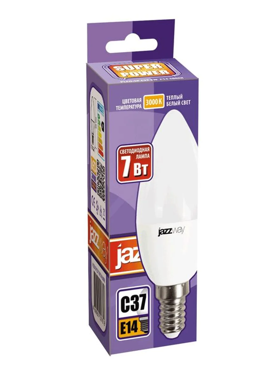 Лампа светодиодная PLED-SP 7Вт C37 свеча 3000К тепл. бел. E14 530лм 230В JazzWay 1027818-2 - купить в KeepBuilding | KeepBuilding