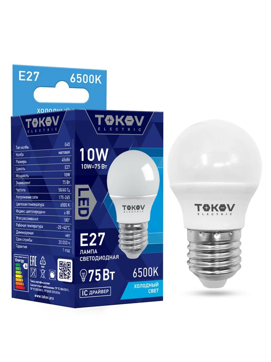 Лампа светодиодная 10Вт G45 6500К Е27 176-264В TOKOV ELECTRIC TKE-G45-E27-10-6.5K - купить в KeepBuilding | KeepBuilding