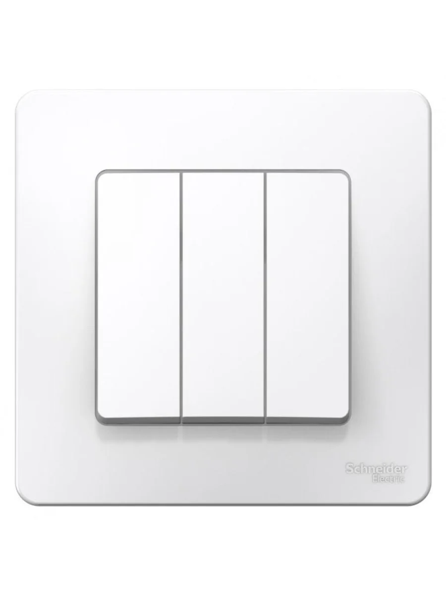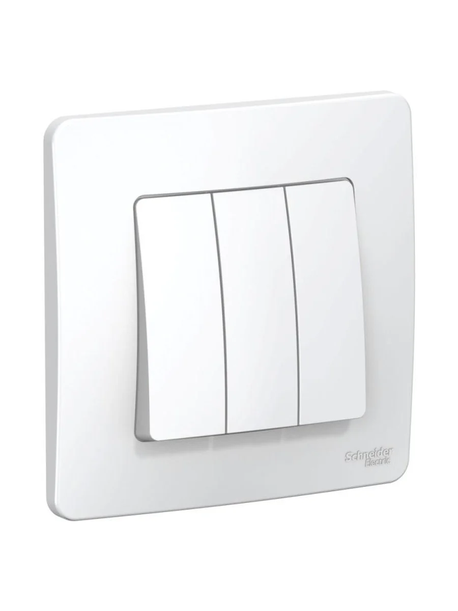 Выключатель Systeme Electric (ранее Schneider Electric) BLANCA (белый, скрытой установки) трехклавишный предназначен для сетей до 250В, на ток до 10А. Подсветка делает его легко находимым в отсутствие освещения. Трехклавишный выключатель позволяет управлять тремя источниками света из одной точки.