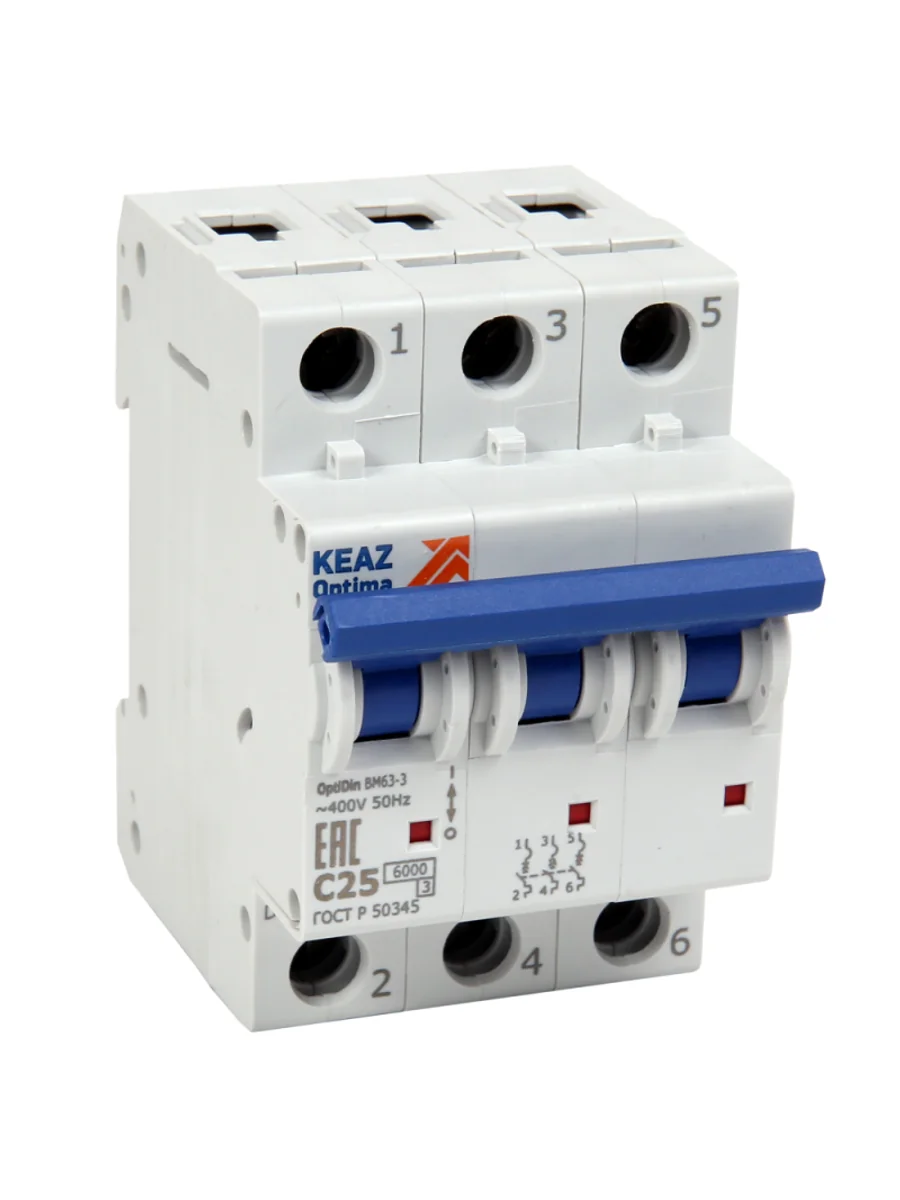 Выключатель автоматический модульный 3п C 16А 6кА OptiDin BM63-3C16-УХЛ3 КЭАЗ 260791 - купить в KeepBuilding | KeepBuilding