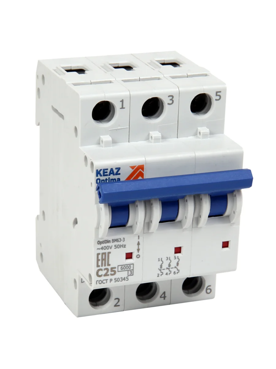 Выключатель автоматический модульный 3п C 50А 6кА OptiDin BM63-3C50-УХЛ3 КЭАЗ 260800 - купить в KeepBuilding | KeepBuilding