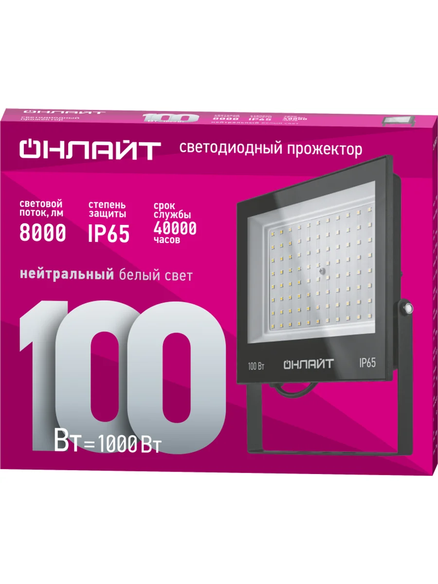 Прожектор светодиодный 61 947 OFL-100-4K-BL-IP65-LED 100Вт 4000К IP65 8000лм черн. ОНЛАЙТ 61947 - купить в KeepBuilding | KeepBuilding