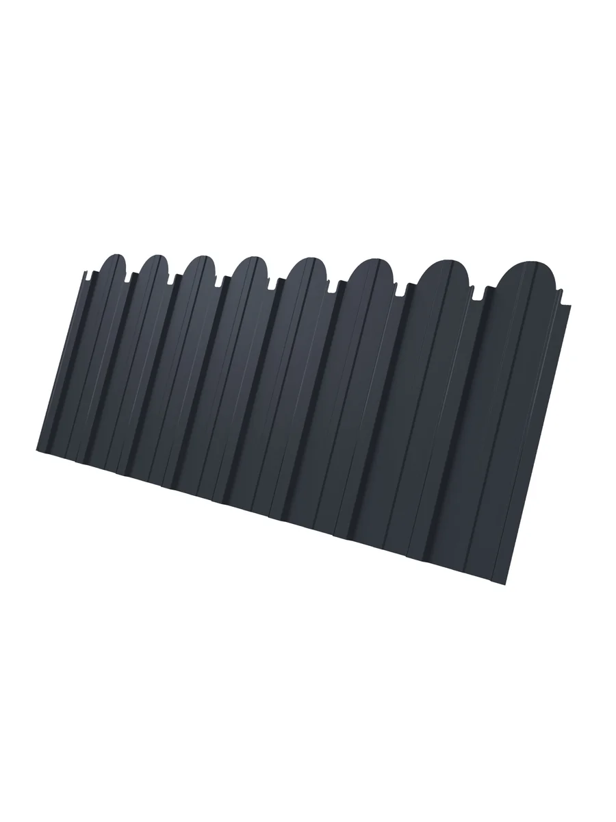 3. Эстетичность: цвет RAL 7024 (мокрый асфальт) придаёт профнастилу современный и стильный вид, который гармонично сочетается с любым архитектурным решением.