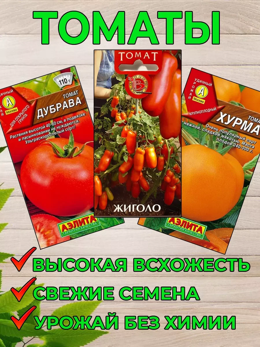 Набор семян состоит из трех пачек. Томат "Дубрава" Аэлита, Томат "Жиголо" Биотехника, Томат "Хурма" Аэлита. Они содержат ранне- и среднеспелые сорта, которые без проблем растут как в домашних условиях, так и на открытой почве средней полосы России. Никаких сложных техник и особенных требований. Вы хотите создать собственный огород и быть уверенными в экологической чистоте продуктов? Это идеальный способ обеспечить себя и свежими продуктами. Но как сделать правильный выбор среди множества семенных наборов на рынке? Мы предлагаем вам экономное решение - наше ассорти. Выращивание овощей станет легким и успешным процессом. Мы тщательно отбираем самые лучшие сорта и использование системы покрытия для сохранения их всхожести. Подходит для огорода и дачи. Мы предлагаем естественный уход без использования химических удобрений и пестицидов. Воспользуйтесь проростками, которые позволят вашим растениям расти полными сил. Не упускайте возможность вырастить ароматные корнеплоды прямо на своей земле. Подойдет для посадки в теплице и на открытом грунте. Не откладывайте на потом - приобретите наш набор семян и приступайте к посадке. Закажите его прямо сейчас и убедитесь в отличном качестве! Подробные описания по уходу Вы найдете в карусели картинок. Богатого Вам урожая!