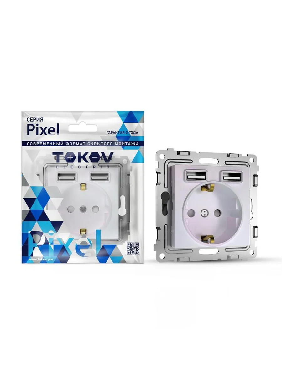 Розетка 1-м СП Pixel IP20 с заземл. с 2-мя заряд. устр. USB тип A+A механизм перламутр. TOKOV ELECTRIC TKE-PX-R1U2A-C04 - купить в KeepBuilding | KeepBuilding