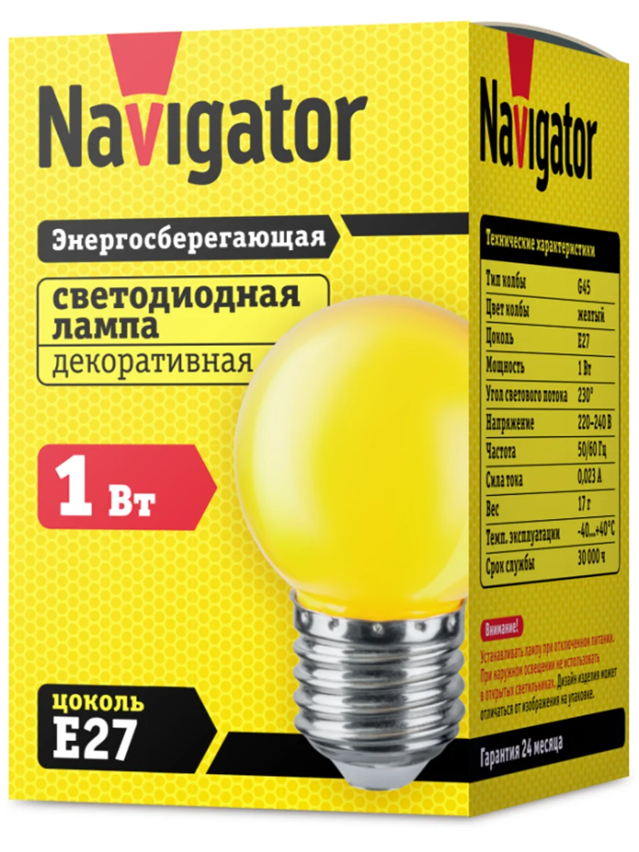 Лампа светодиодная 71 830 NLL-G45-1-230-Y-E27 1Вт шар E27 176-264В Navigator 71830 - купить в KeepBuilding | KeepBuilding