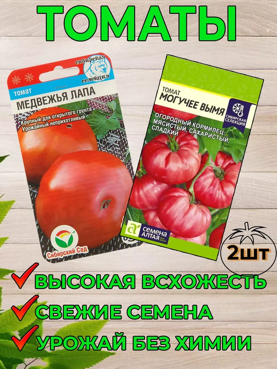 Медвежья Лапа: Среднеранний высокопродуктивный крупноплодный сорт любительской селекции. Сорт характеризуется редким сочетанием крупноплодности и завидной урожайности. Плоды плоскоокруглые, ярко-красные, выровненные, мясистые и сахаристые на изломе. Впечатляет и вес плода — до 800 г. В кисти формируется 4-5 эффективных плодов. Общая урожайность достигает до 6-8 кг с растения. Куст мощный, высотой 120-170 см, требуется подвязка и пасынкование.