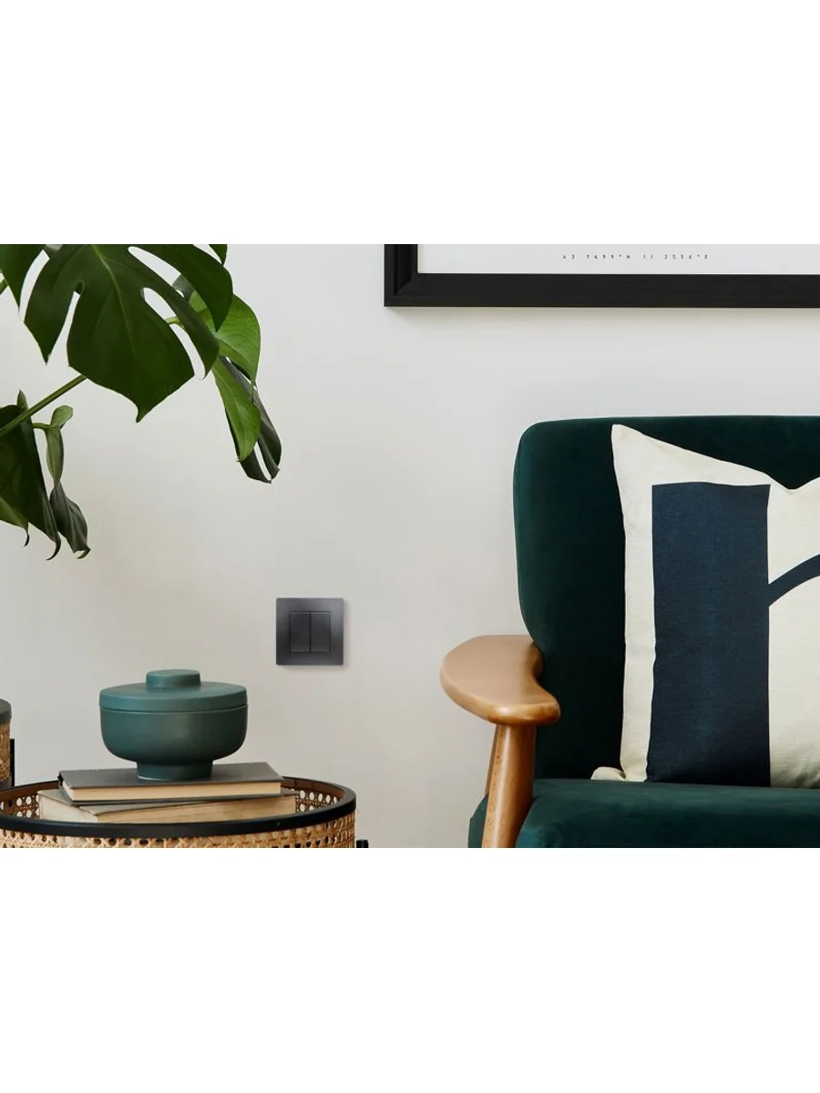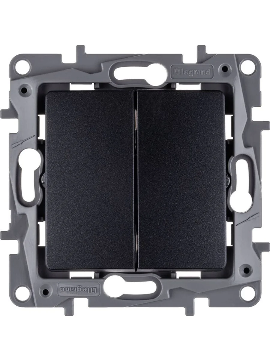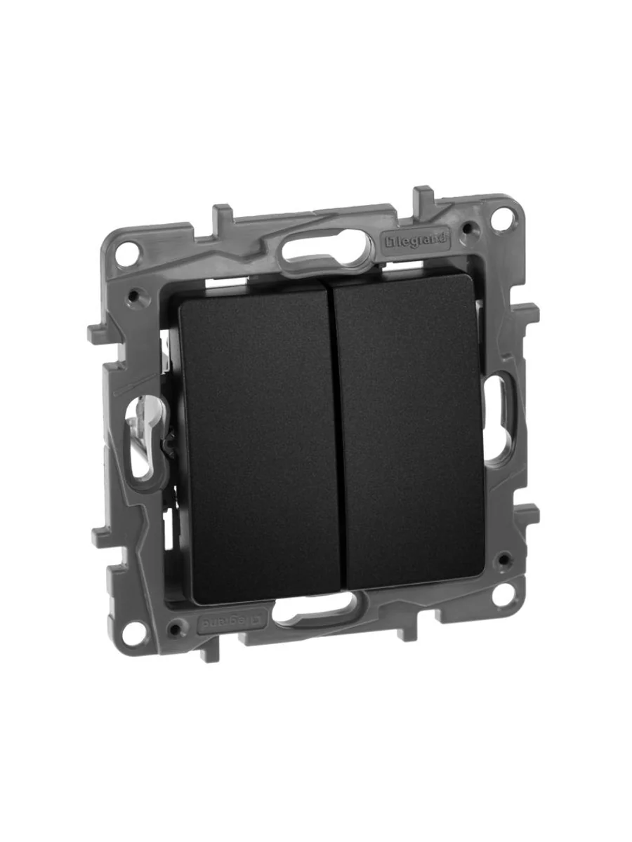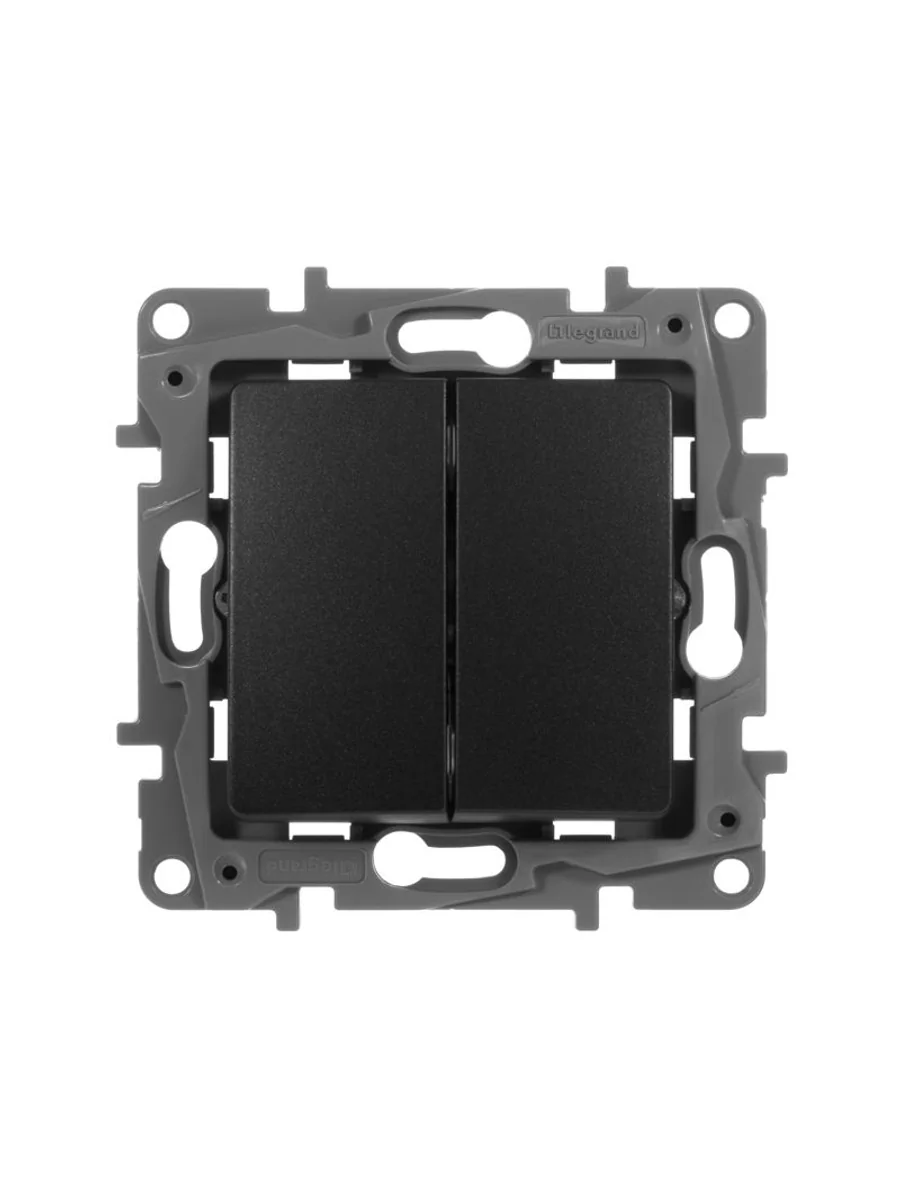 Выключатель двухклавишный ETIKA для скрытого монтажа, номинальный ток 10 А, предназначен для управления двумя электрическими цепями.