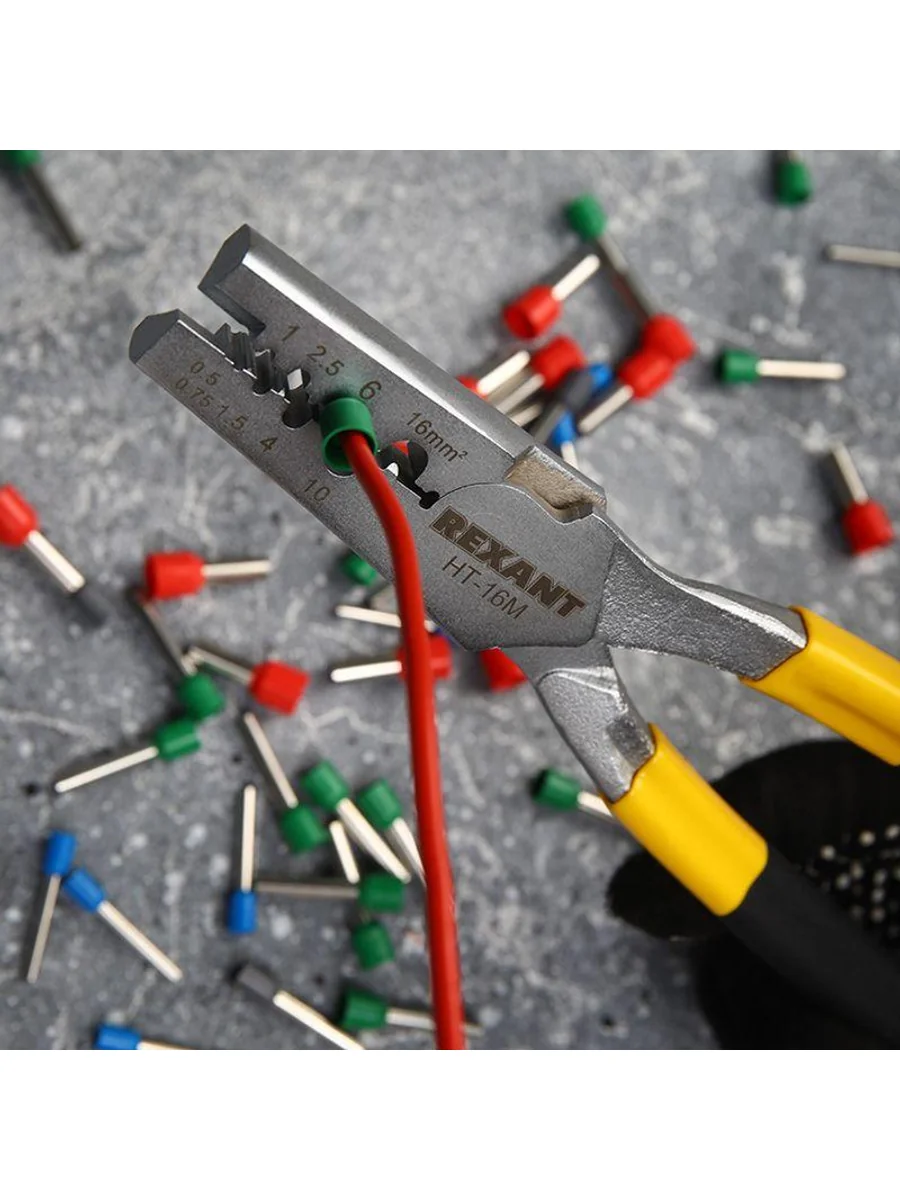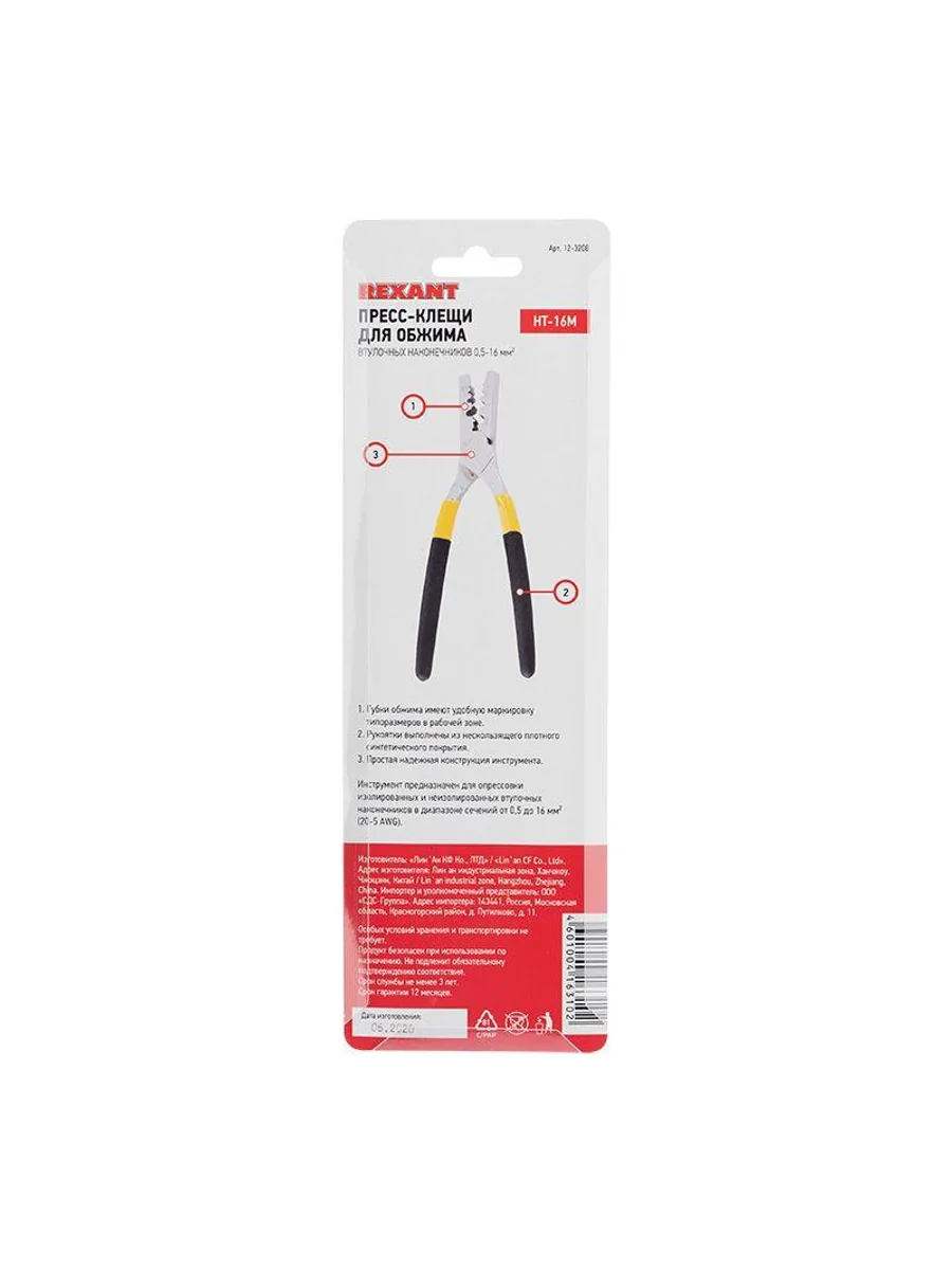 Пресс-клещи для обжима втулочных наконечников 0.5-16кв.мм (HT-16M) Rexant 12-3208