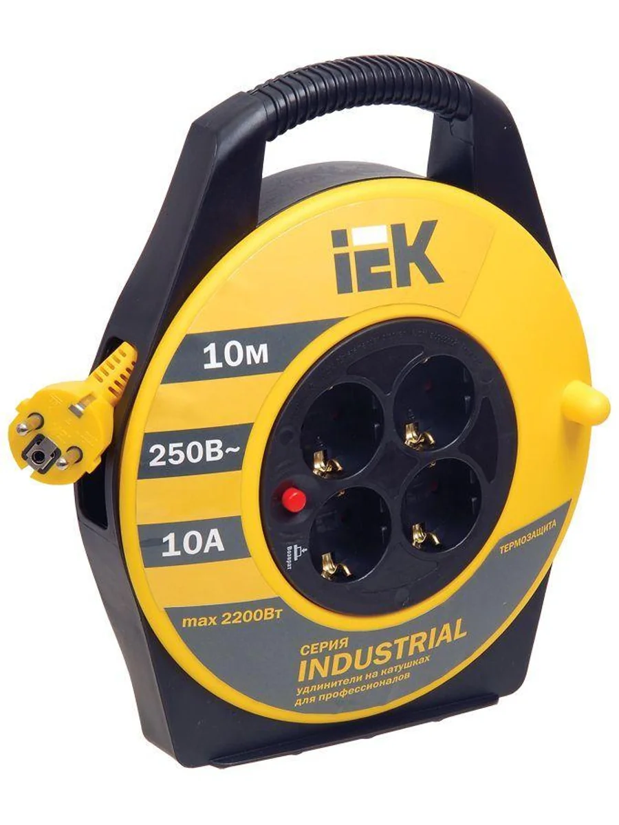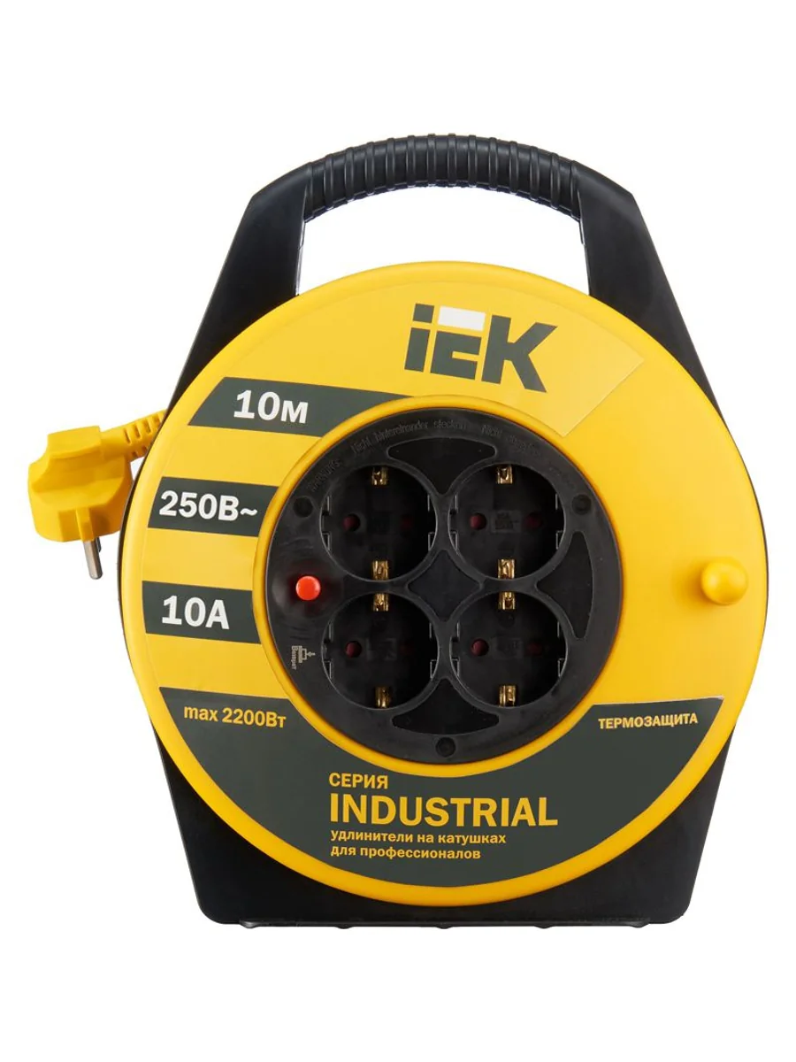 Удлинитель на катушке 4х10м с заземл. 10А IP20 Industrial УК10 3х1 термозащита IEK WKP14-10-04-10