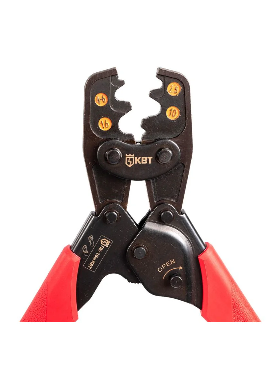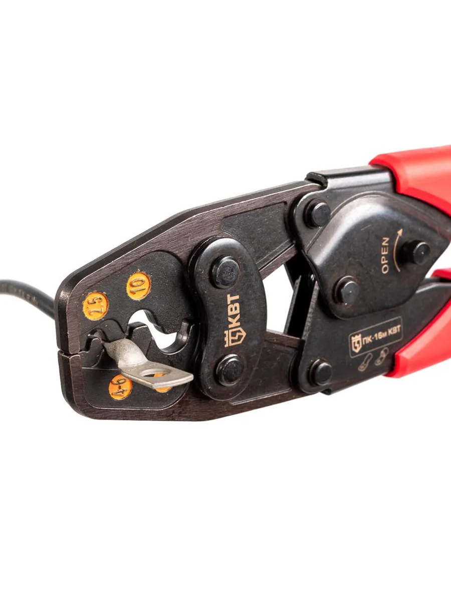 • Диапазон сечений: медные наконечники 2.5–16 мм2 • 4-х позиционные опрессующие губки • Опрессовка наконечников и гильз любого стандарта • Клиновидный обжим • Инструмент предназначен для опрессовки однопроволочных и многопроволочных жил • Скрытый храповой механизм обеспечивает более высокое передаточное усилие и гарантирует полный цикл опрессовки • Винт для экстренной разблокировки матриц • Обработка поверхности: воронение • Эргономичные рукоятки • Вес: 445 г • Длина: 275 мм