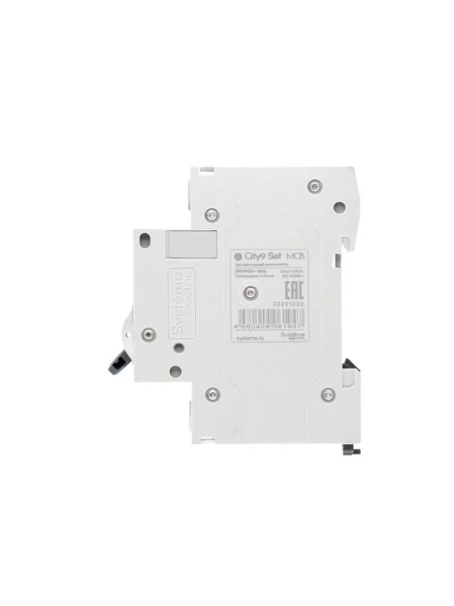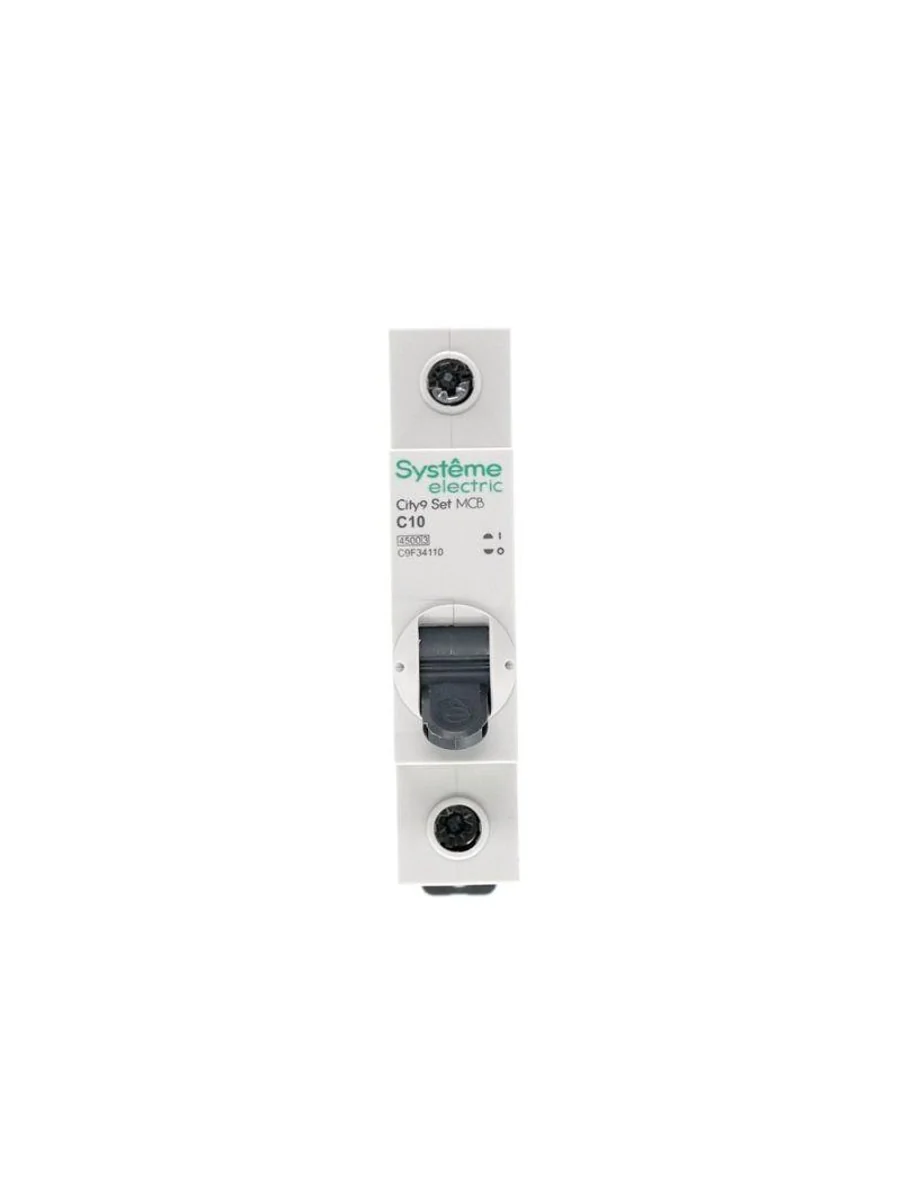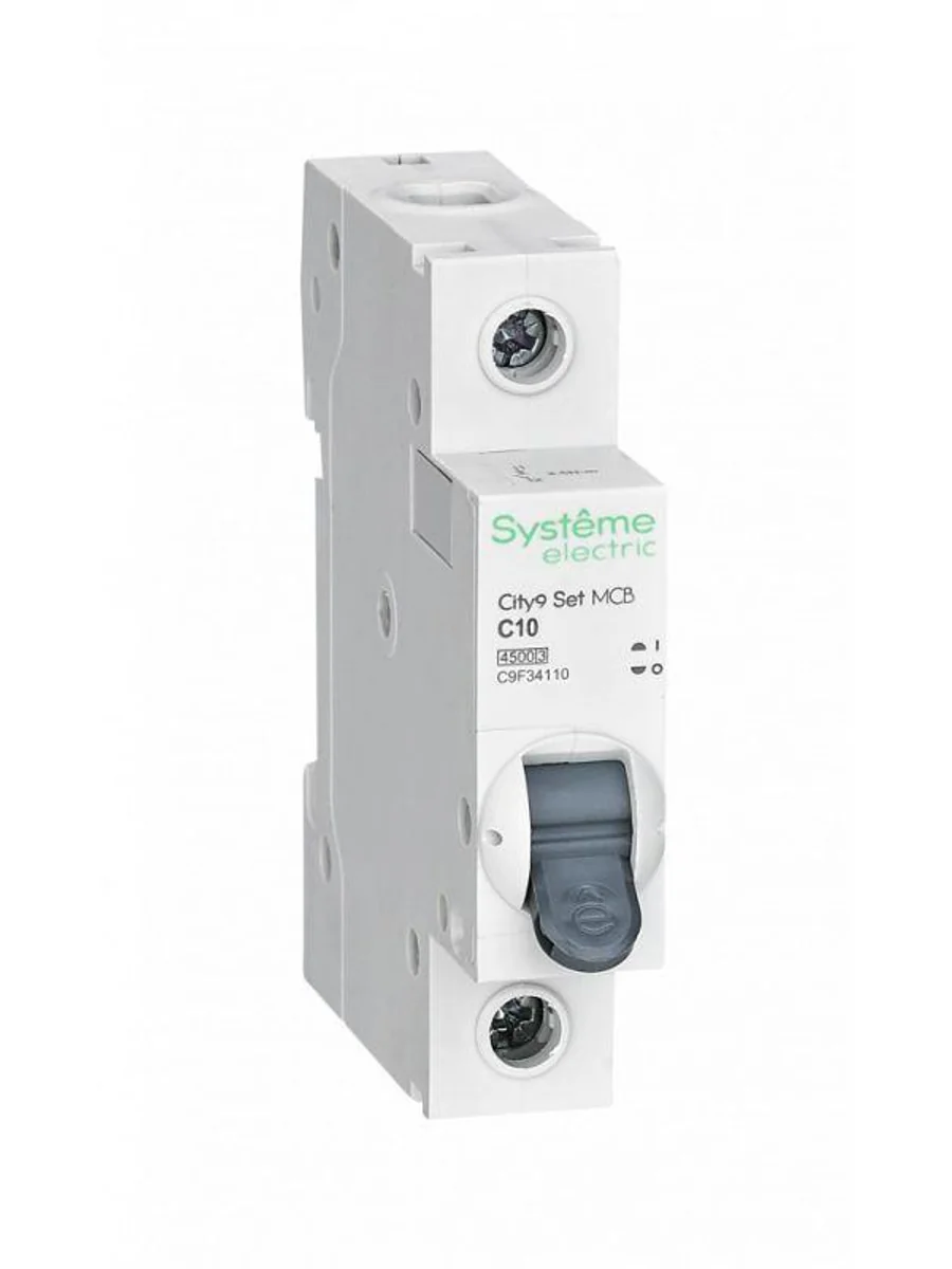 Автоматический выключатель серии City9 Set Systeme Electric, 1-полюсный, номинальный ток 10 А, характеристика С, Icn = 4.5 кА. Применяется в электрических сетях напряжением 230 В. Предназначен для защиты от перегрузок и токов короткого замыкания. Оснащен механизмом «мгновенной коммутации». Ударопрочный корпус из специального пластика с 6 металлическими заклепками. Безопасные клеммы исключают попадание кабелей в заклеммное пространство (ранее Schneider Electric EZ9F34110).