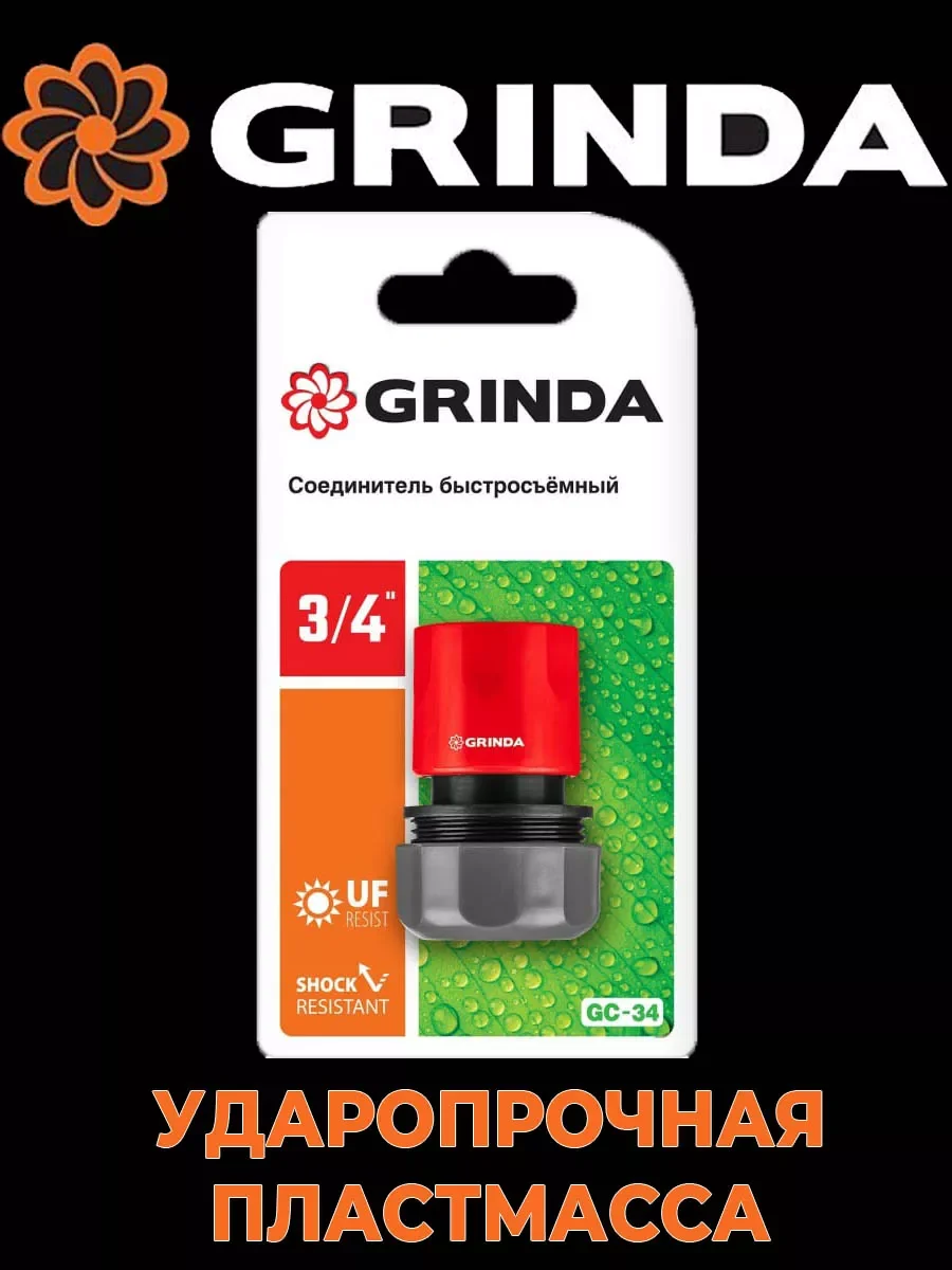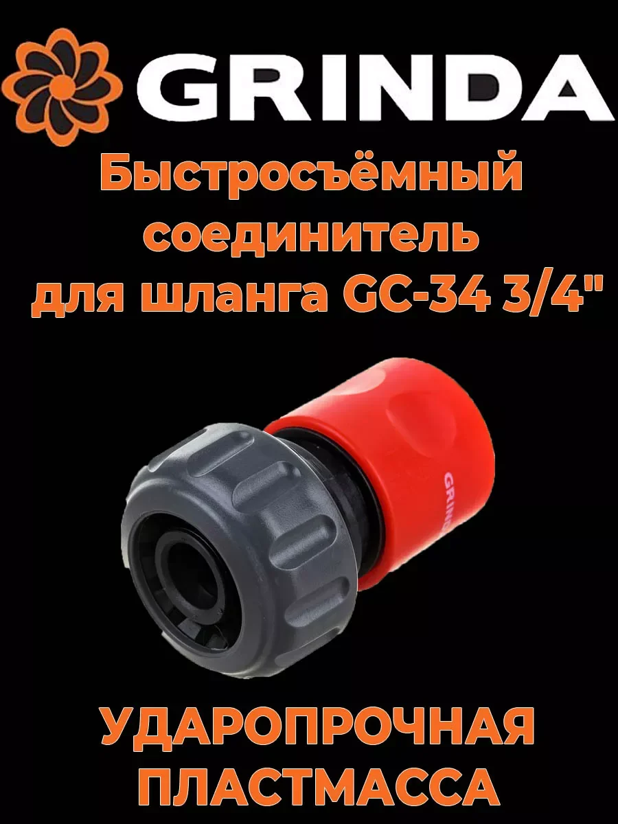 Быстросъёмный соединитель для шланга GC-34 3/4" Grinda 8-426326_z01 используется с системами полива для соединения поливочного шланга с различными насадками. Соединитель выполнен из пластика, который не подвергается механическим воздействиям, что обеспечивает долгий срок эксплуатации. Уплотнительные кольца выполнены из эластичной резины высокого качества, за счет чего они не реагируют на температурные перепады, а также не вступают в реакцию с химическими веществами. С помощью конструкции достигается легкая и быстрая смена насадок, когда это необходимо.