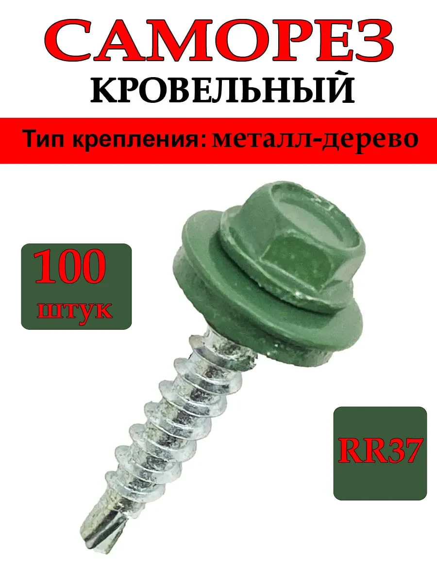 Саморез кровельный RR37 зеленый 100 штук - купить в KeepBuilding | KeepBuilding