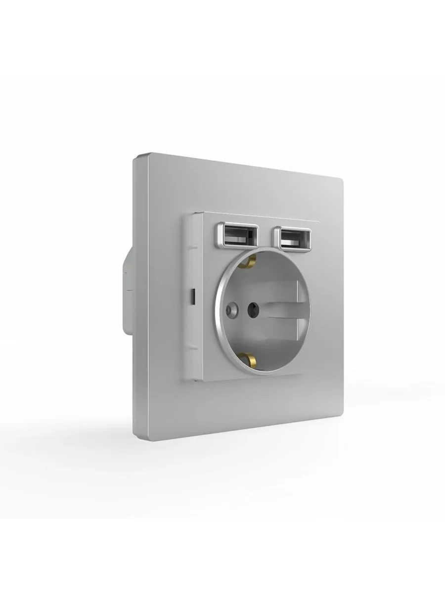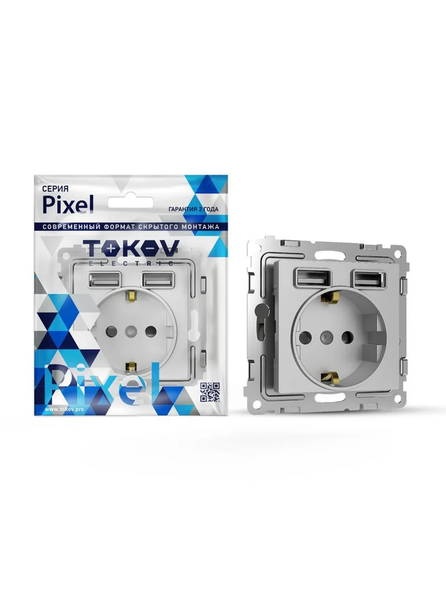 Розетка 1-м СП Pixel с заземл. с 2-мя заряд. устр. USB тип A+A механизм алюм. TOKOV ELECTRIC TKE-PX-R1U2A-C03 | KeepBuilding