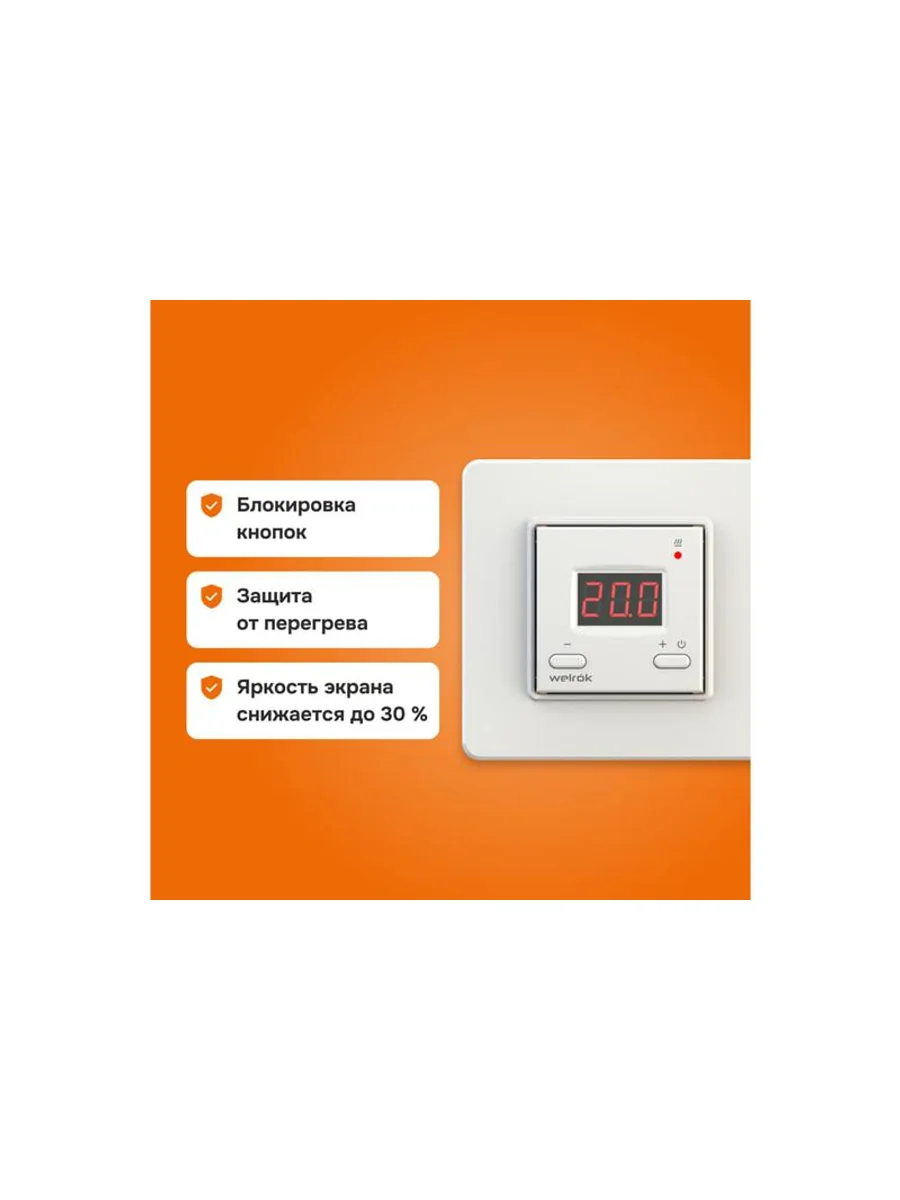 * **Безопасность.** Устройство оснащено функцией защиты от перегрева, что предотвращает возможные повреждения системы тёплого пола и обеспечивает безопасность использования.