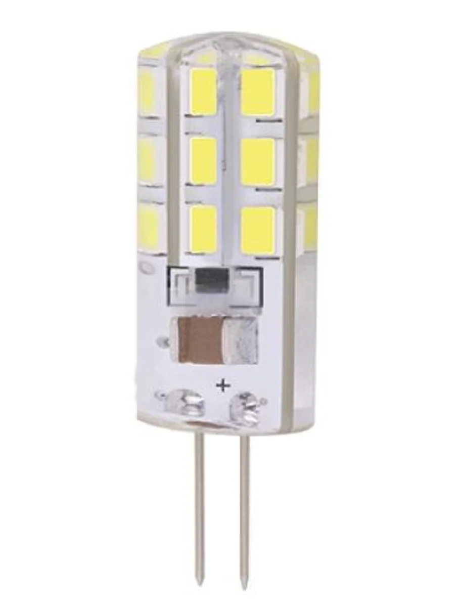 Светодиодные лампы PLED-G4 JAZZWAY повторяют форму и размеры стандартных галогенных капсюльных ламп и идеально подходят к различным светильникам, в которых используются данные типы ламп. PLED-G4 3W – увеличенный световой поток. Материал корпуса ламп PLED-G4 COB 3W: эпоксидная смола. Температура эксплуатации: –20...+40 °С. Гарантия на все лампы: 2 года.