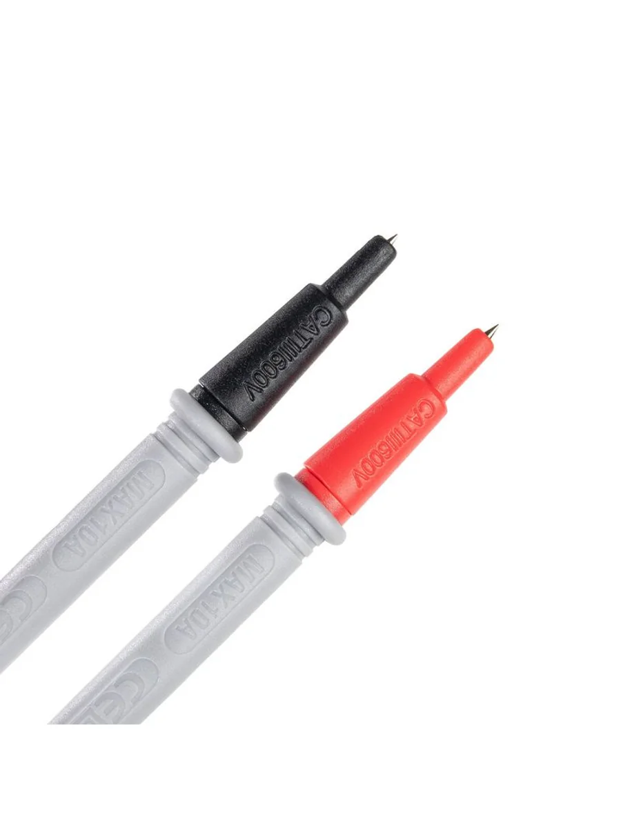 • Щупы для измерения параметров электрического тока, прозвонки и тестирования электрических и электронных схем • Провод щупа (черный/красный): • сечение провода: 22 AWG • длина провода: 800 мм • материал изоляции провода: ПВХ • Наконечник: длина 15,5 мм, ? 2 мм • Штекер углового типа (90°), ? контактной части 4 мм • Класс безопасности: 600 В CAT IV и 1000 В CAT III • Максимально допустимый ток: 10 А