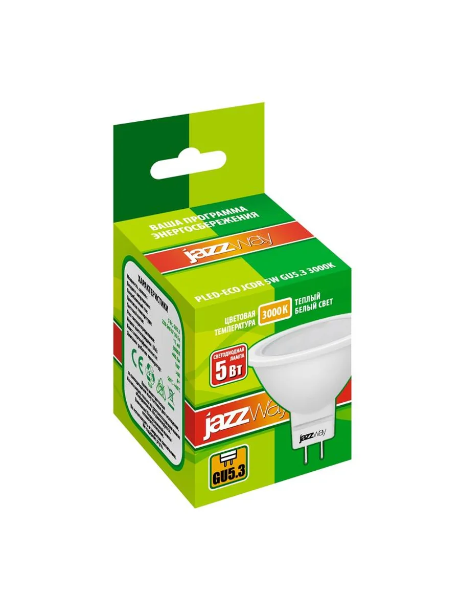 Лампа светодиодная PLED-ECO 5Вт JCDR MR16 рефлектор матовая 3000К тепл. бел. GU5.3 400лм 230В 50Гц JazzWay 1037077A - купить в KeepBuilding | KeepBuilding