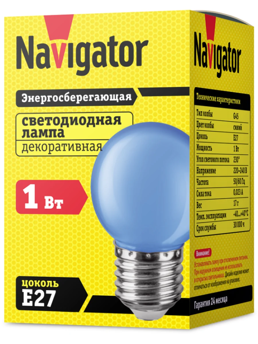 Лампа светодиодная 71 829 NLL-G45-1-230-B-E27 1Вт шар E27 176-264В син. Navigator 71829 - купить в KeepBuilding | KeepBuilding