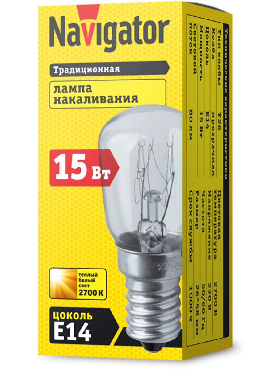 Лампа накаливания 61 203 NI-T26-15-230-E14-CL Navigator 61203 - купить в KeepBuilding | KeepBuilding
